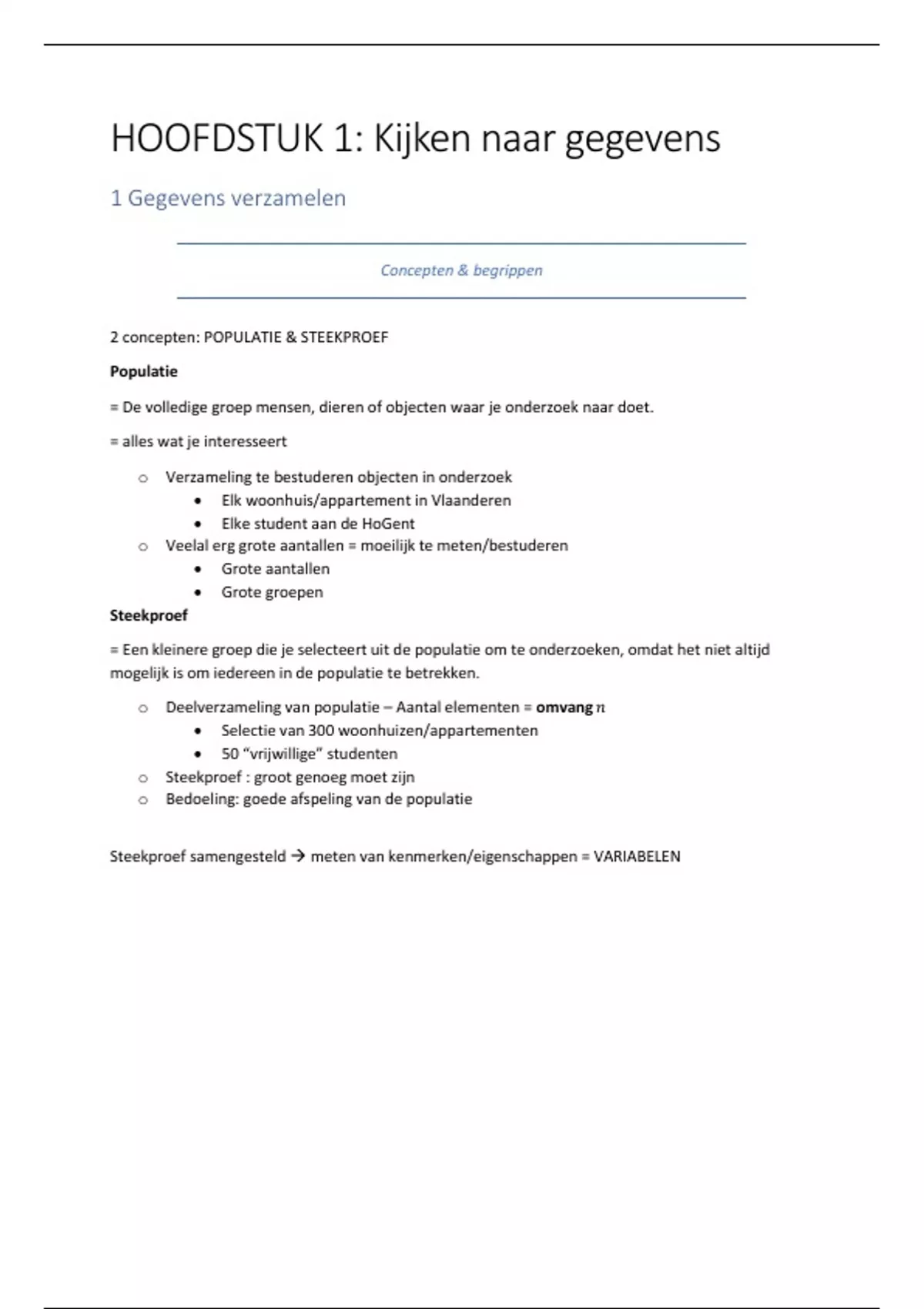 2 concepten: POPULATIE & STEEKPROEF
