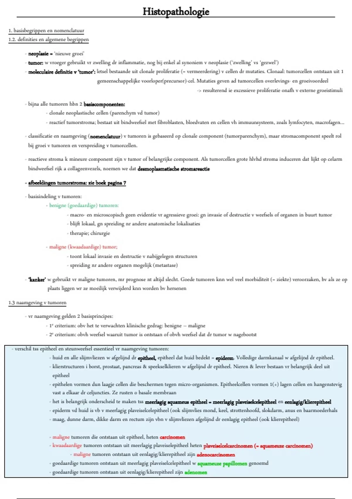 Samenvatting histopathologie (revalidatiewetenschappen en kinesitherapie)