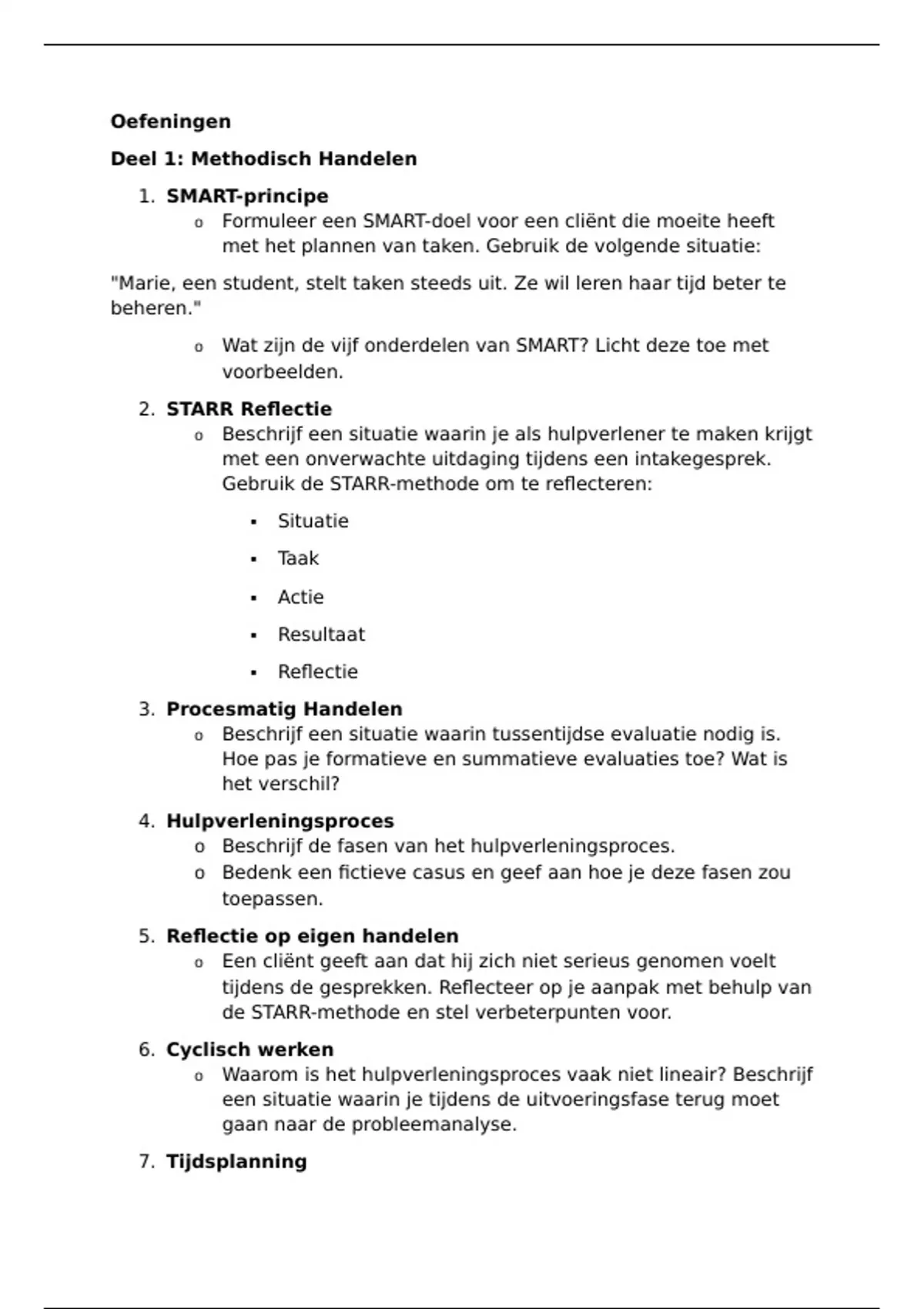 o Formuleer een SMART-doel voor een cliënt die moeite heeft