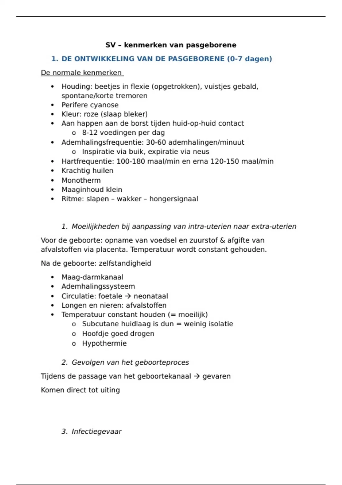 1. DE ONTWIKKELING VAN DE PASGEBORENE (0-7 dagen)