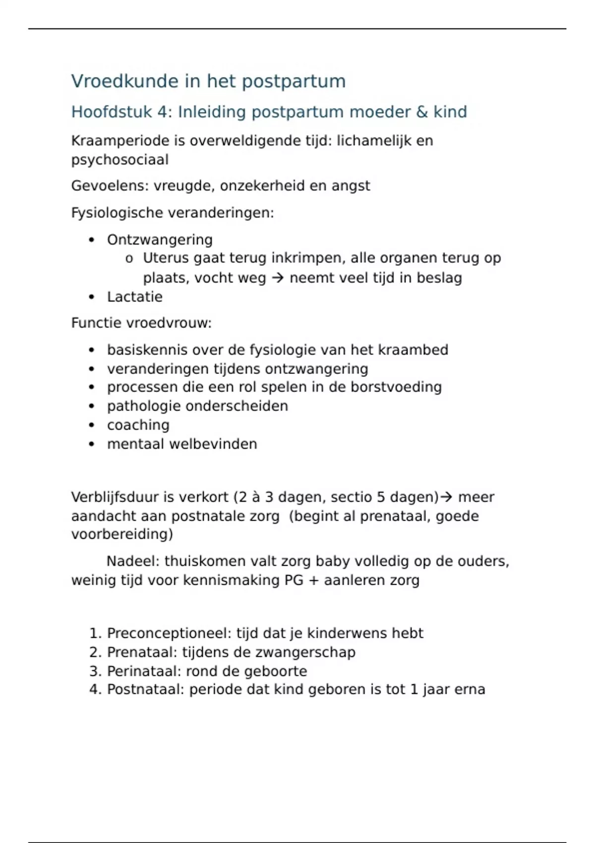 Hoofdstuk 4: Inleiding postpartum moeder & kind