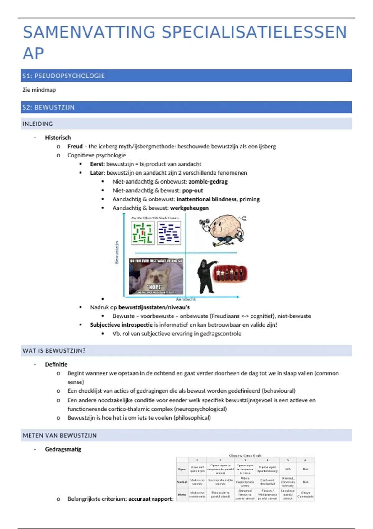 Hier vind je een samenvatting van alle specialisatielessen (powerpoints met eigen notities, aangevuld door het handboek voor verduidelijking) van Algemene Psychologie in het eerste jaar in de bachelor Toegepaste Psychologie.