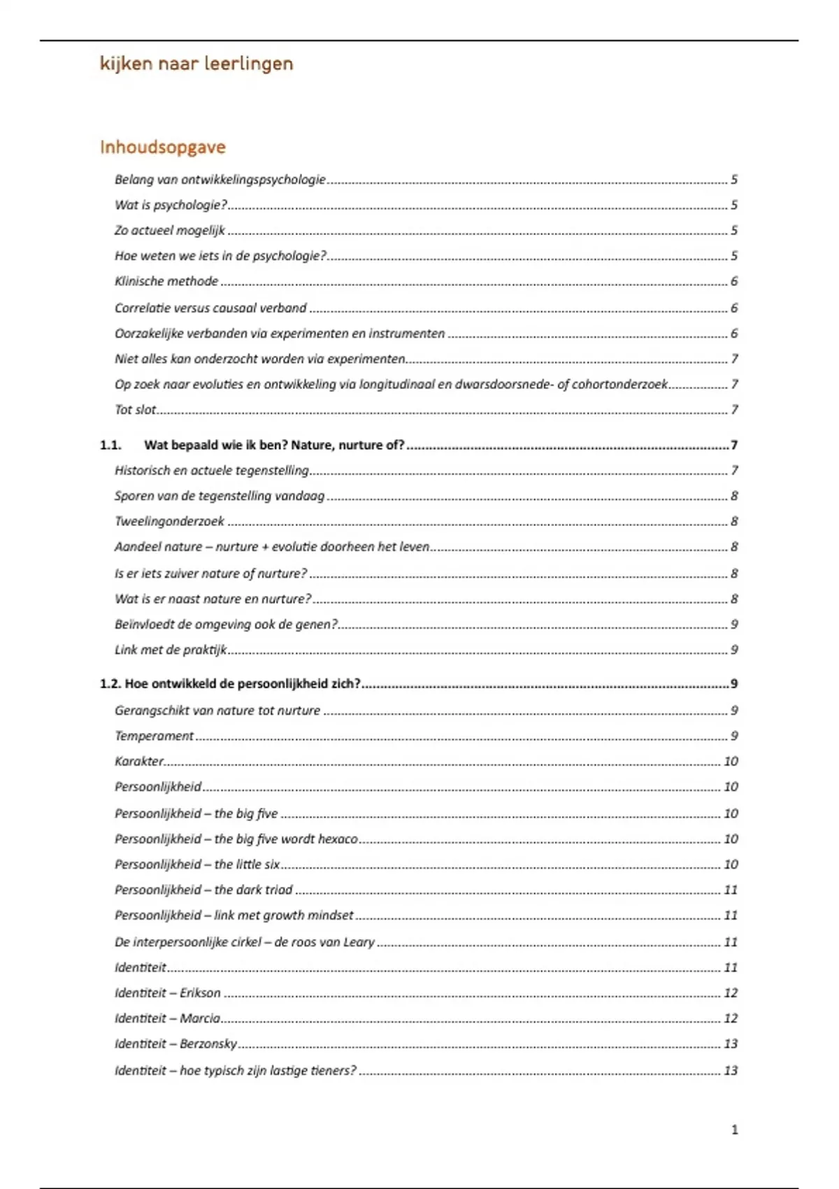 1.2. Hoe ontwikkeld de persoonlijkheid zich? .................................................................................................. 9