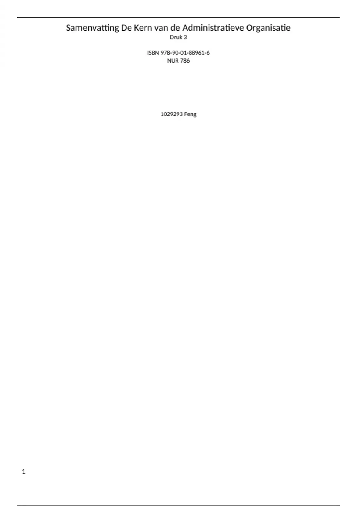 Samenvatting De kern van de administratieve organisatie - H1 t/m 21