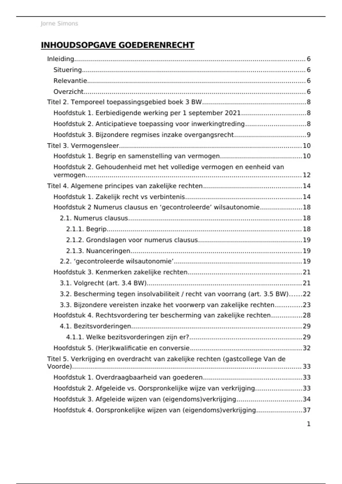 INHOUDSOPGAVE GOEDERENRECHT