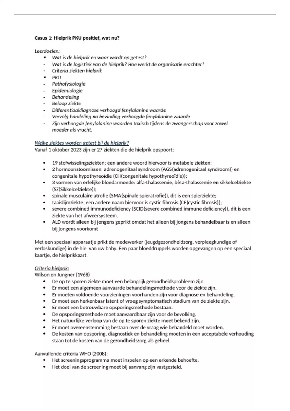 - Criteria ziekten hielprik