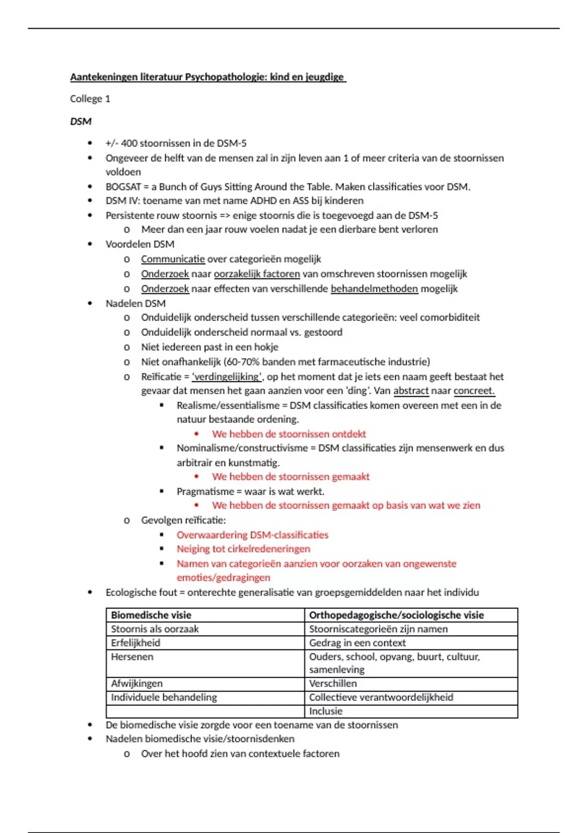 Aantekeningen literatuur Psychopathologie: kind en jeugdige