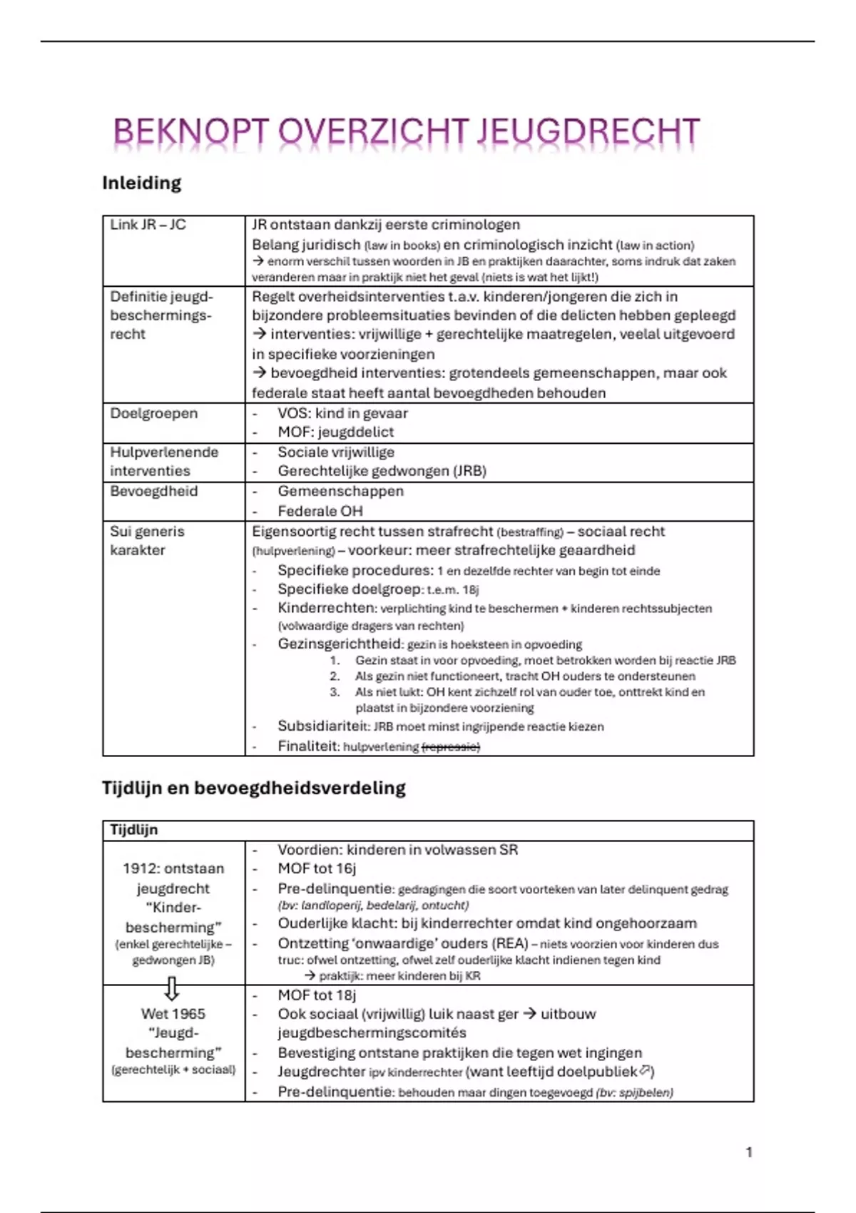 Samenvatting Beknopt overzicht luik jeugdrecht (jeugdrecht en jeugdcriminologie
