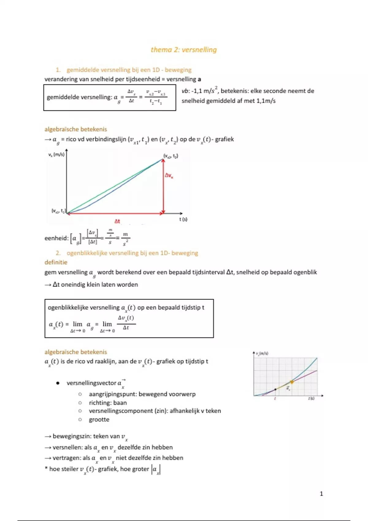 1. gemiddelde versnelling bij een 1D - beweging