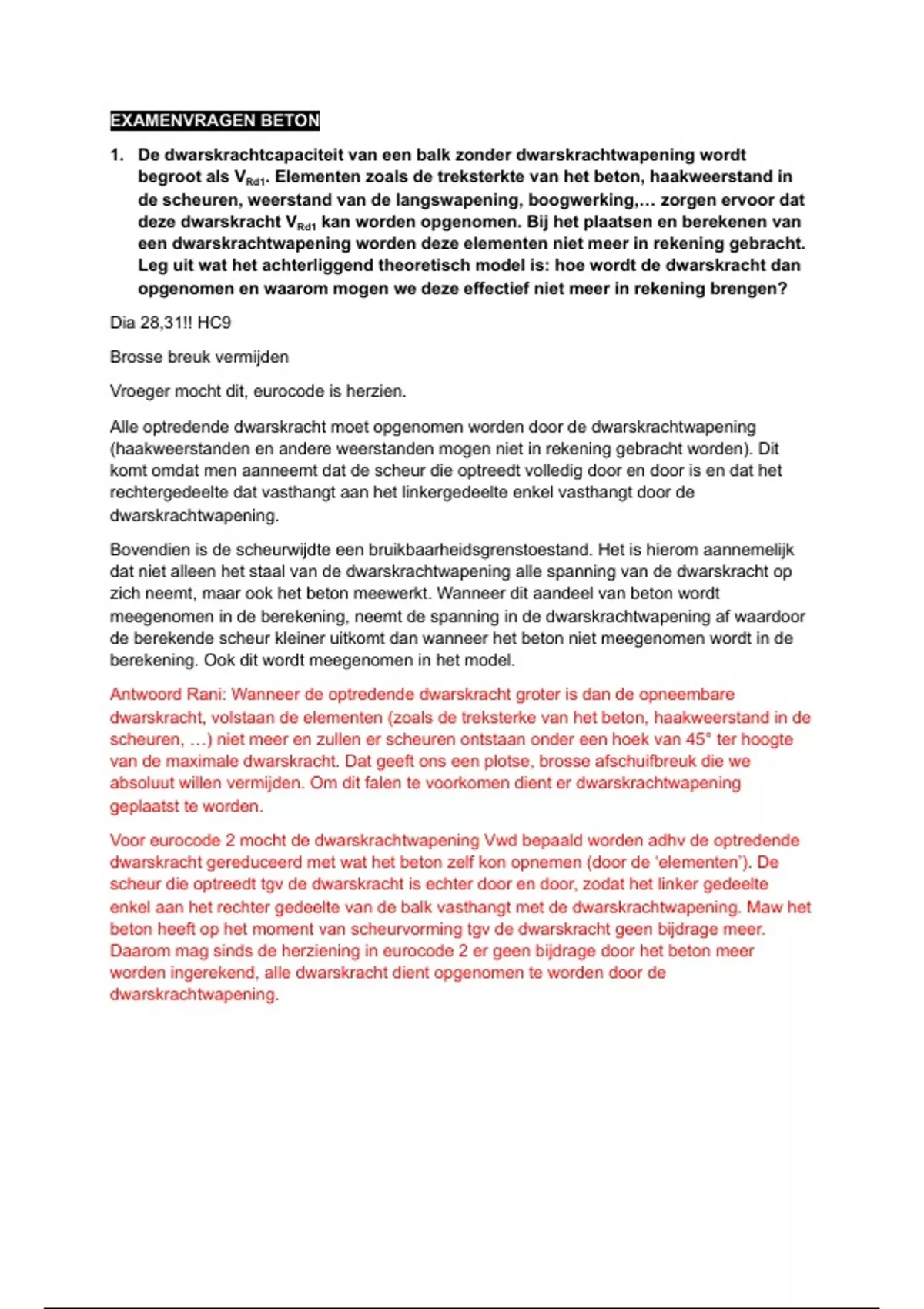 EXAMENVRAGEN BETON