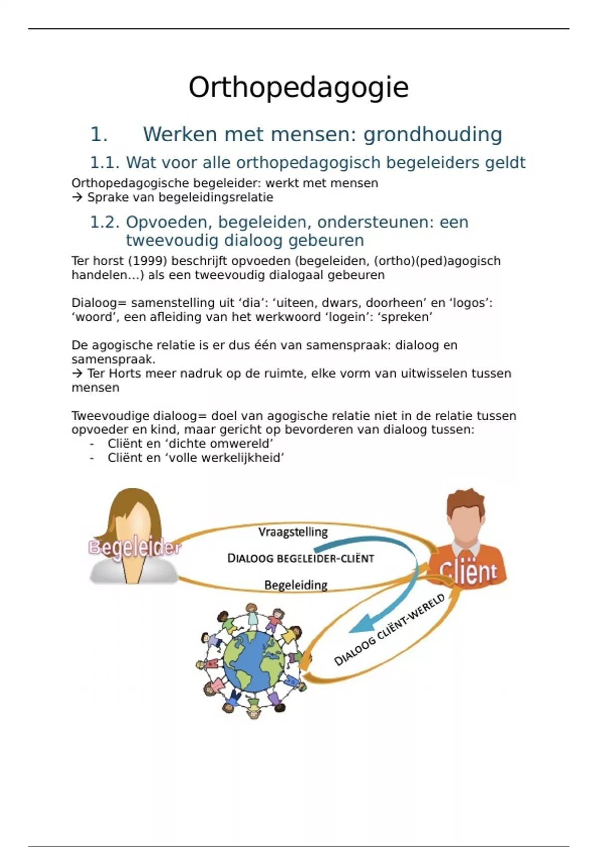 Ter horst (1999) beschrijft opvoeden (begeleiden, (ortho)(ped)agogisch