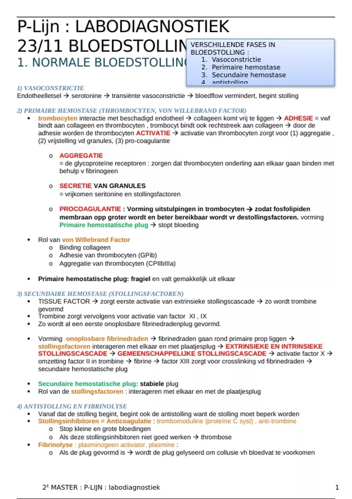 3) SECUNDAIRE HEMOSTASE (STOLLINGSFACTOREN)