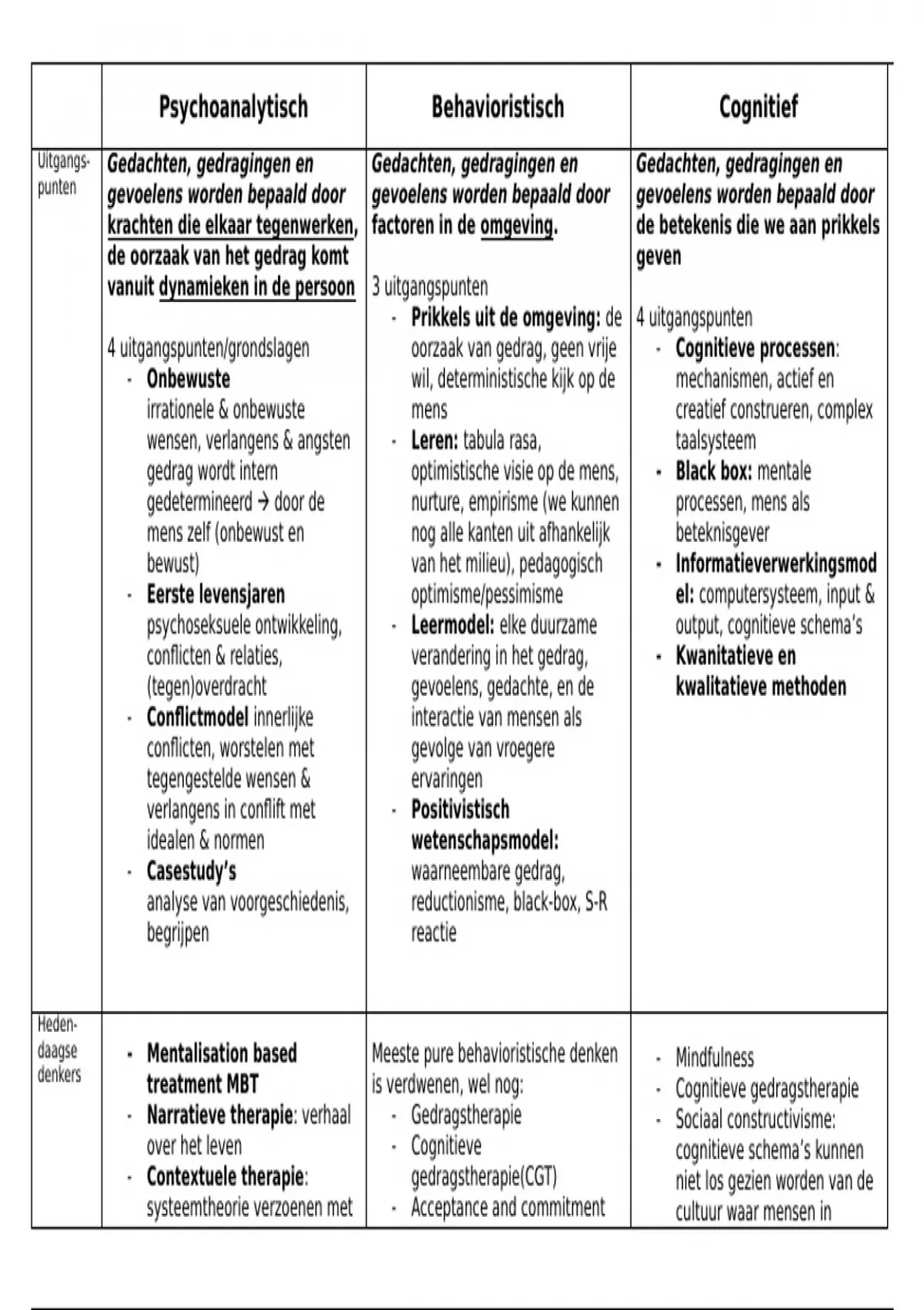 Schema/samenvatting met kort de 6 benaderingen van de psychologie in