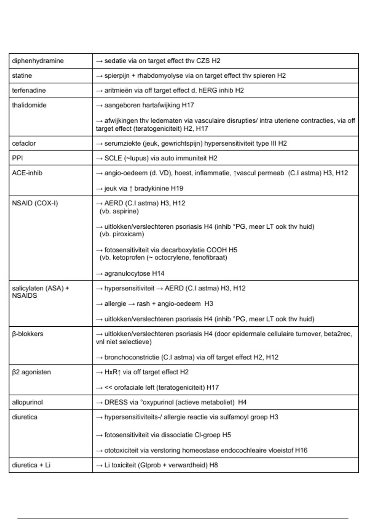 → bronchoconstrictie (C.I astma) via off target effect H2, H12