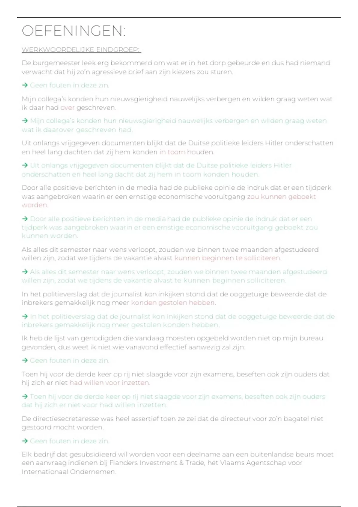 Uitgewerkte oefeningen grammatica communicatievaardigheden Alle oefeningen volledig