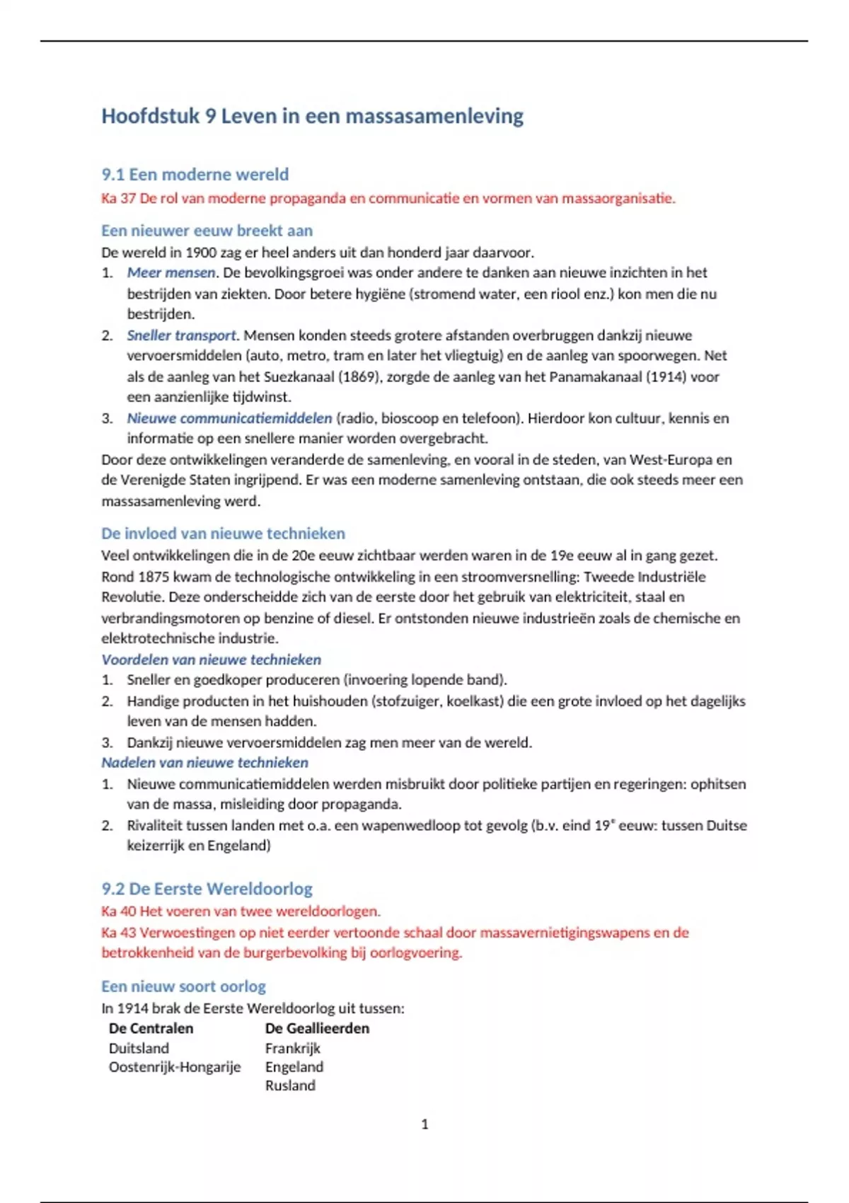 Hoofdstuk 9 Leven in een massasamenleving