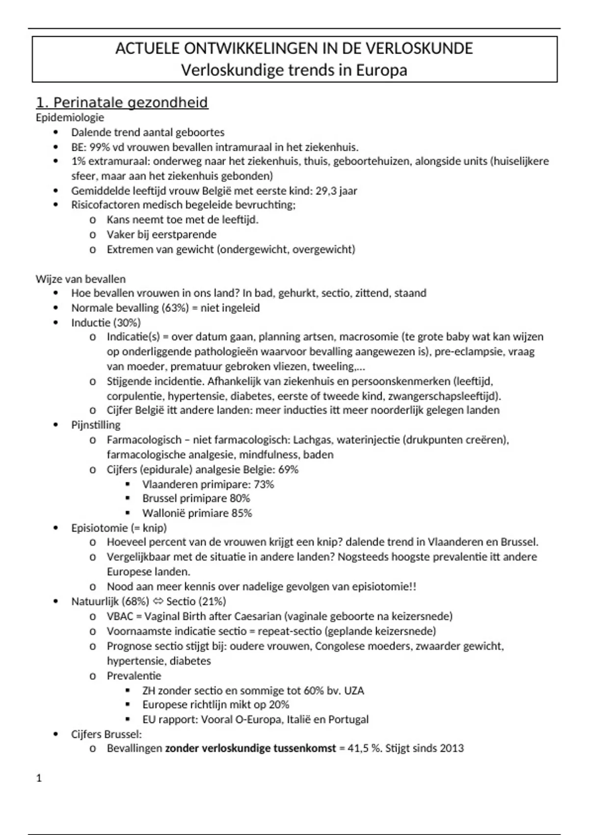 ACTUELE ONTWIKKELINGEN IN DE VERLOSKUNDE