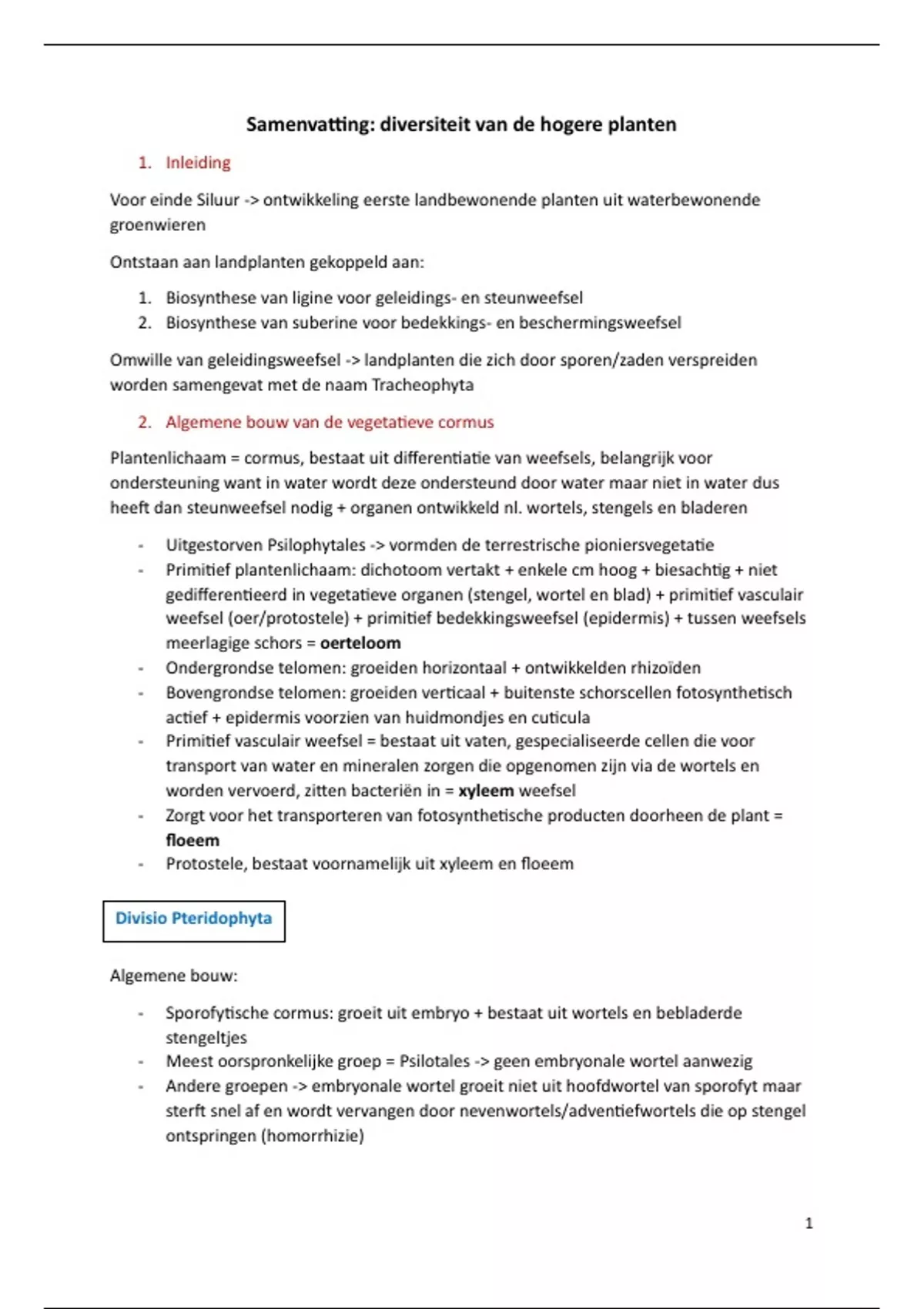 samenvatting diversiteit van de hogere planten