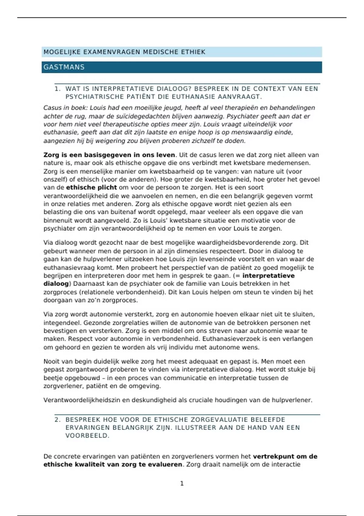 MOGELIJKE EXAMENVRAGEN MEDISCHE ETHIEK