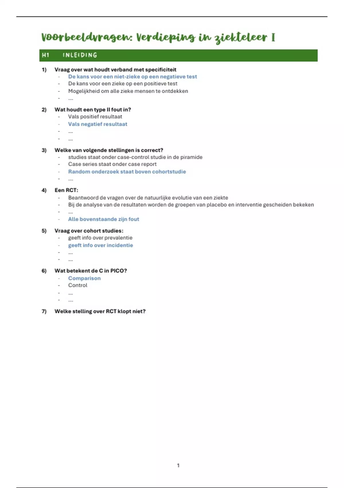 Voorbeeldvragen: Verdieping in ziekteleer I