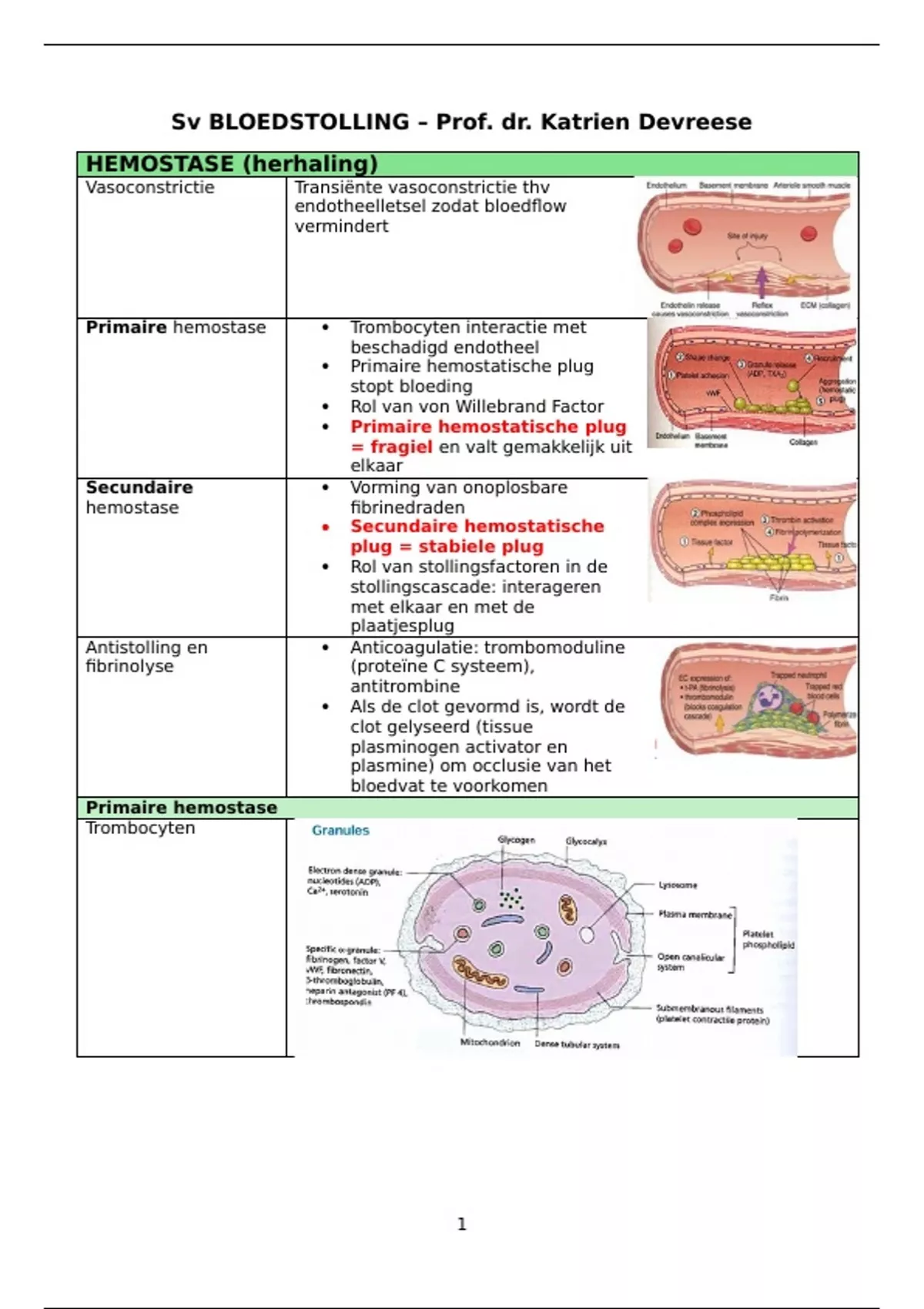 samenvatting bloedstolling tabelvorm Prof. Dr. Katrien De Vreese