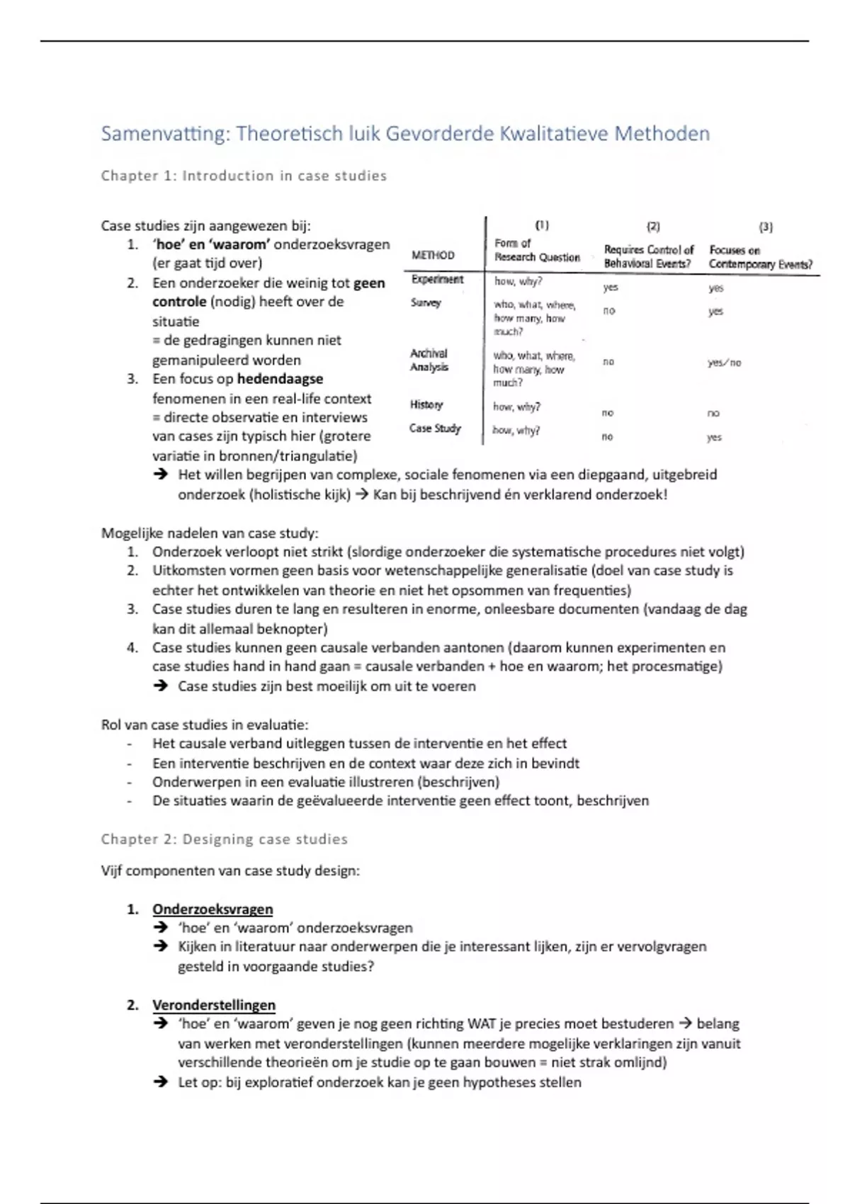 Deze samenvatting bevat het theoretisch luik van het vak Gevorderde Kwalitatieve Methoden. Het is een handige leidraad met tips en tricks voor het praktijkgedeelte.