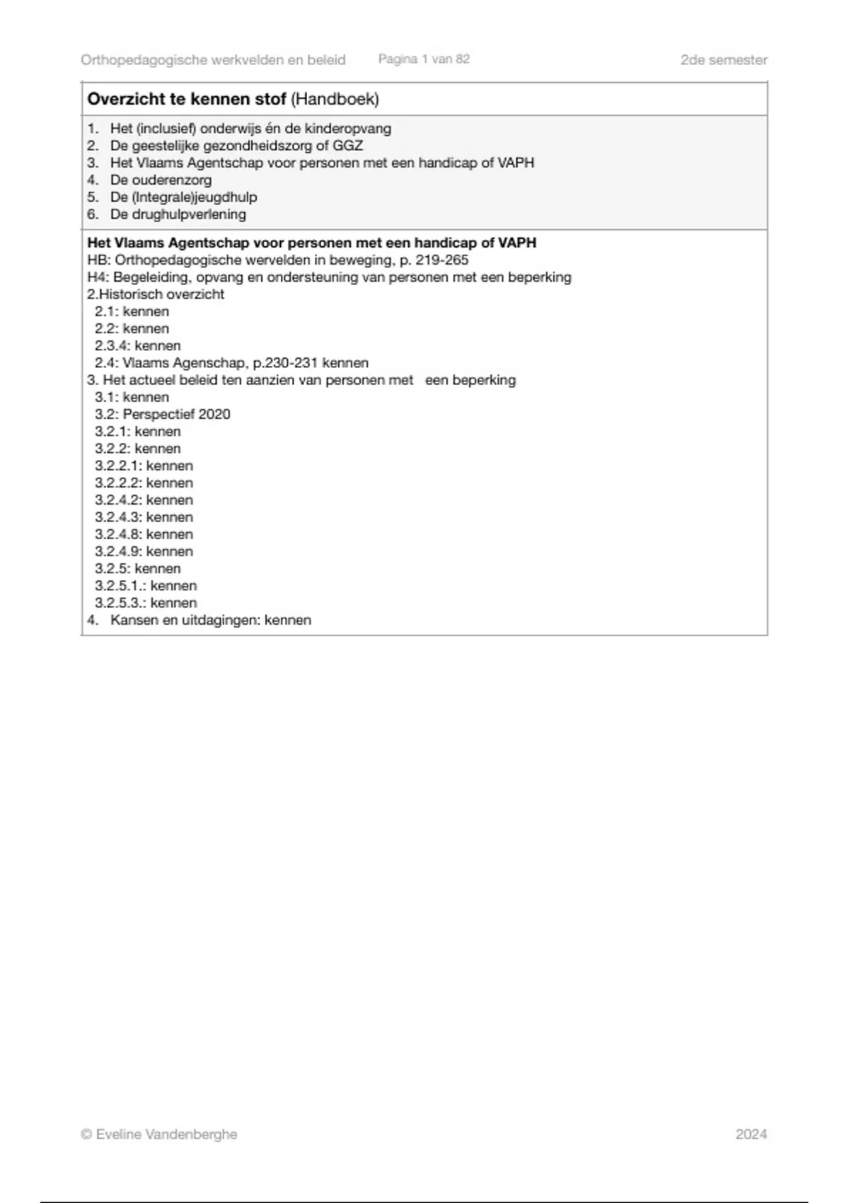 , Orthopedagogische werkvelden en beleid Pagina 4 van 82 2de semester