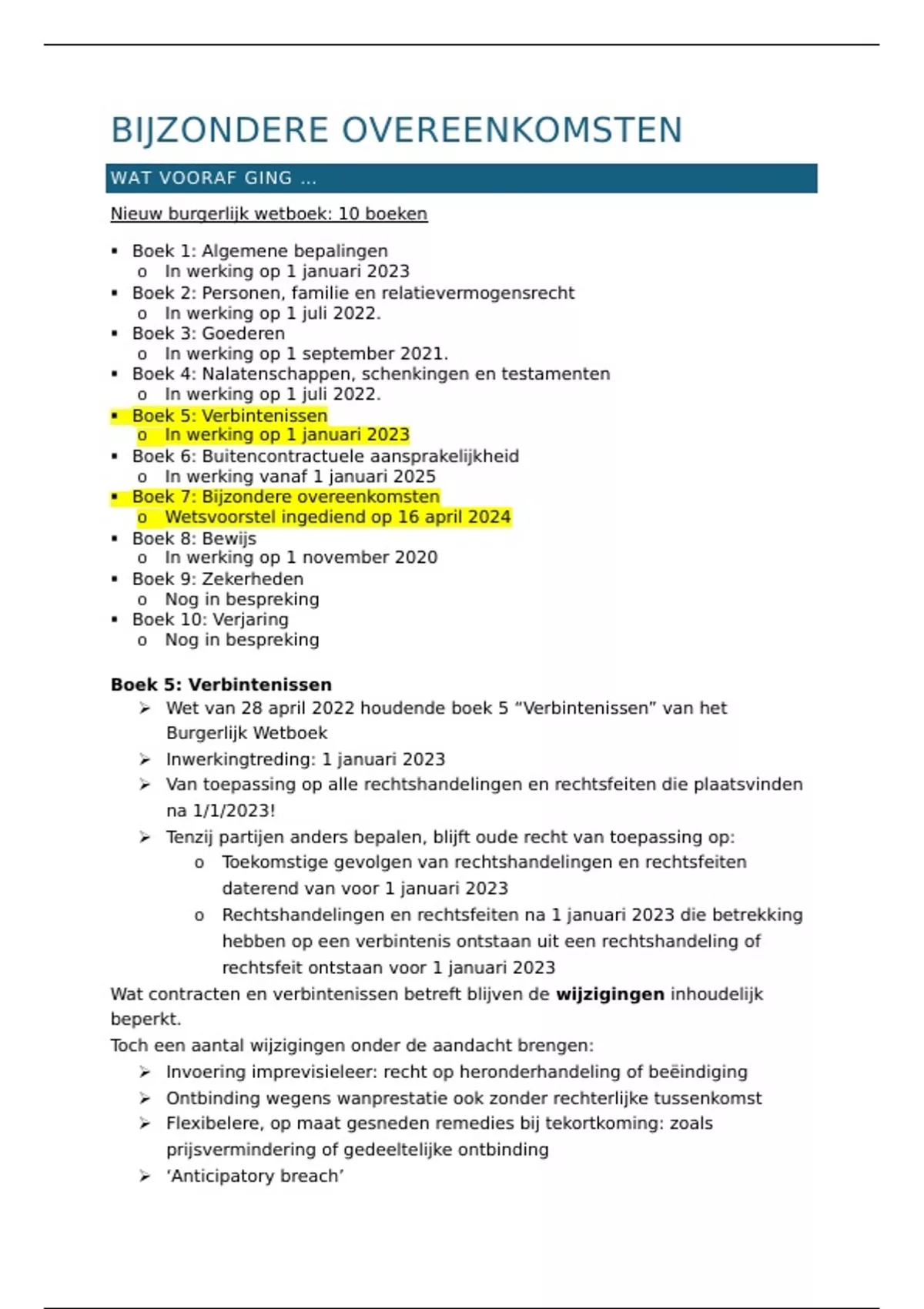 Wat contracten en verbintenissen betreft blijven de wijzigingen inhoudelijk