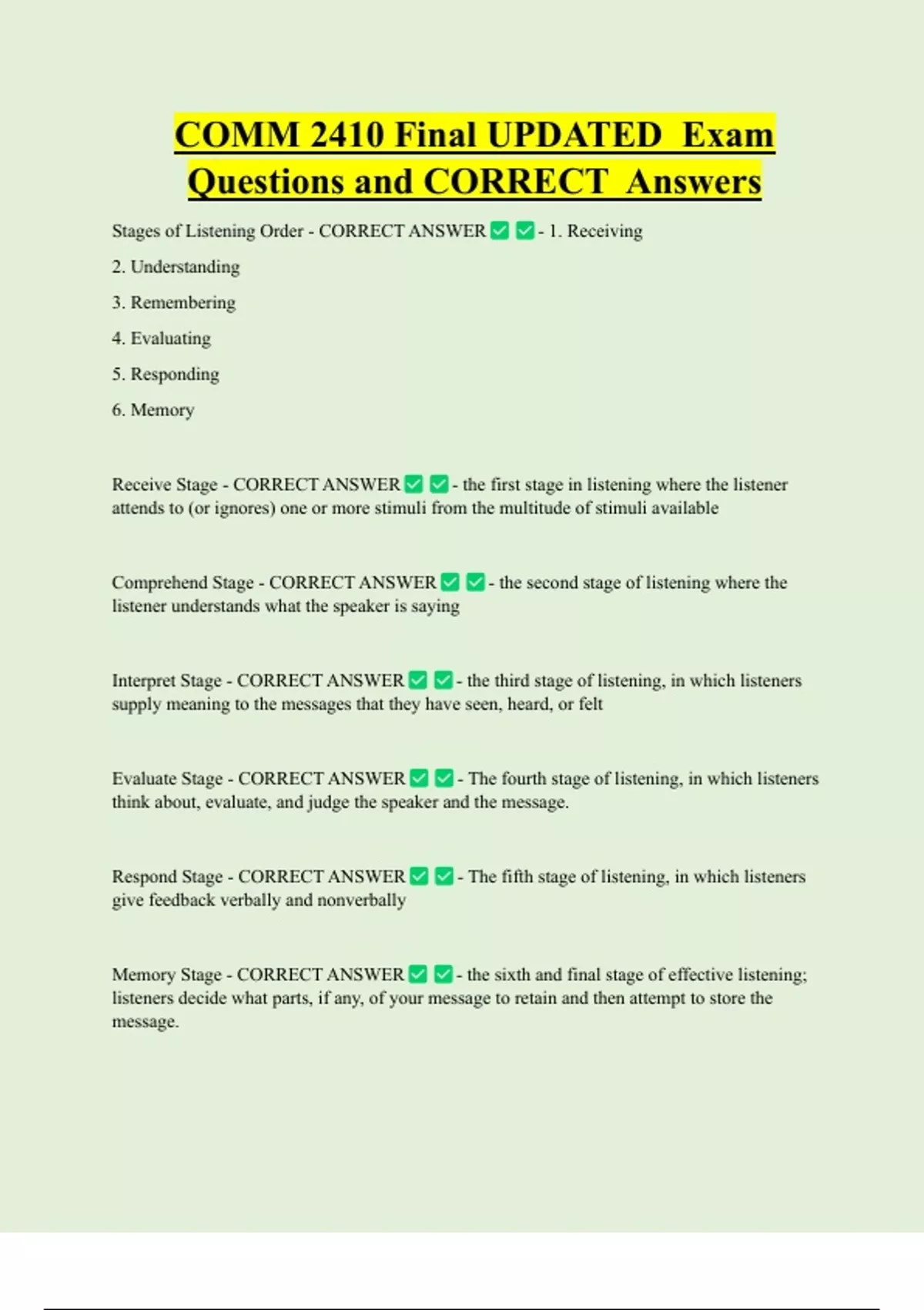 Stages of Listening Order - CORRECT ANSWER - 1. Receiving