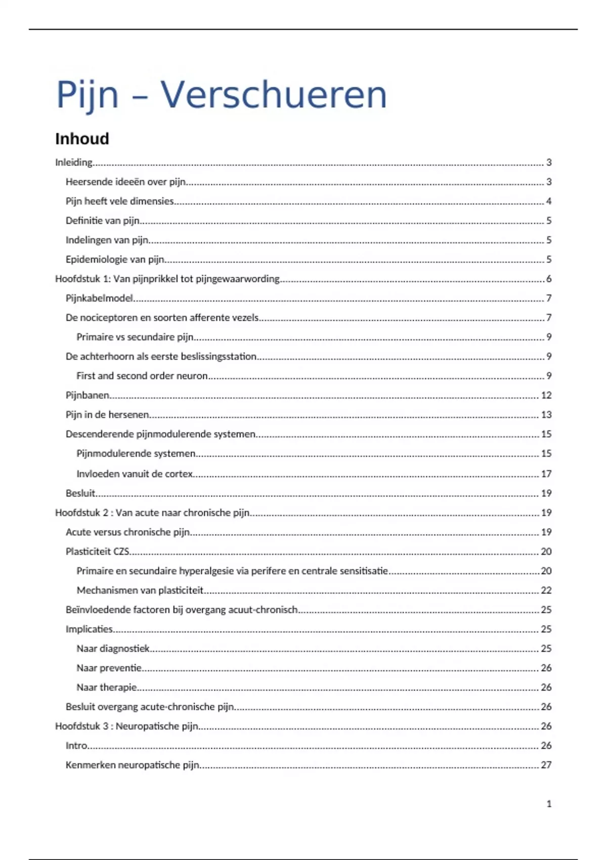 Primaire vs secundaire pijn................................................................................................................................ 9
