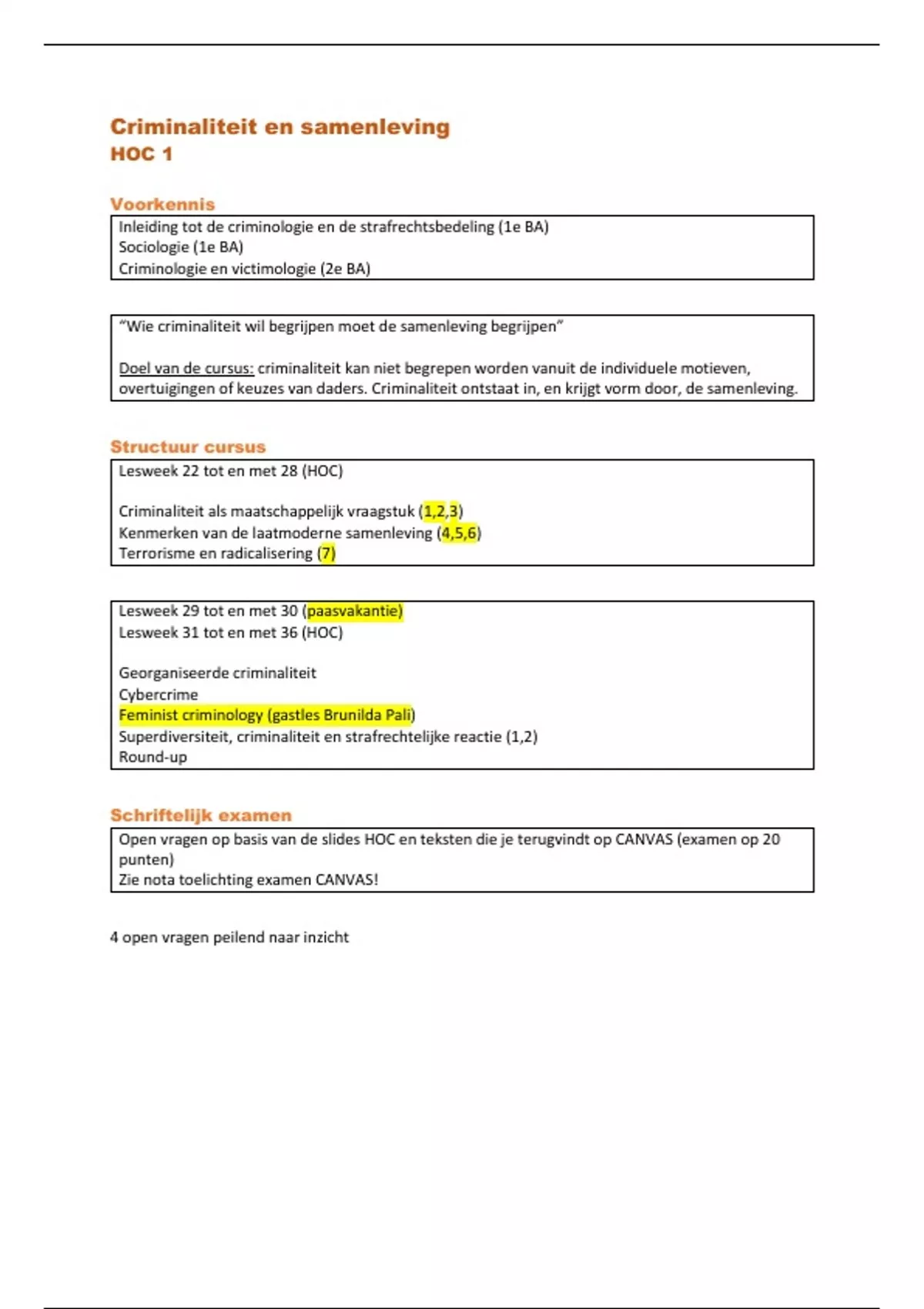 Open vragen op basis van de slides HOC en teksten die je terugvindt op CANVAS (examen op 20