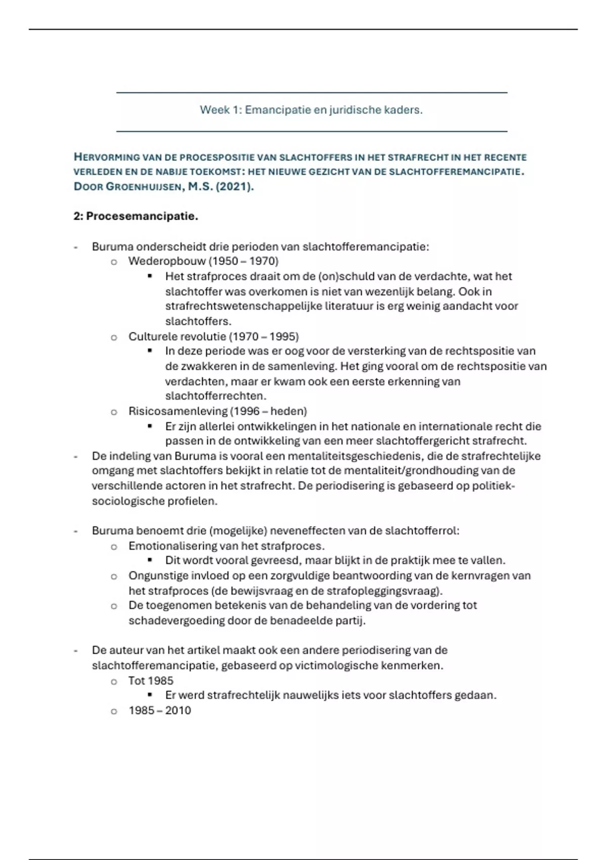 Uitgebreide Literatuursamenvatting Forensische Victimologie week 1