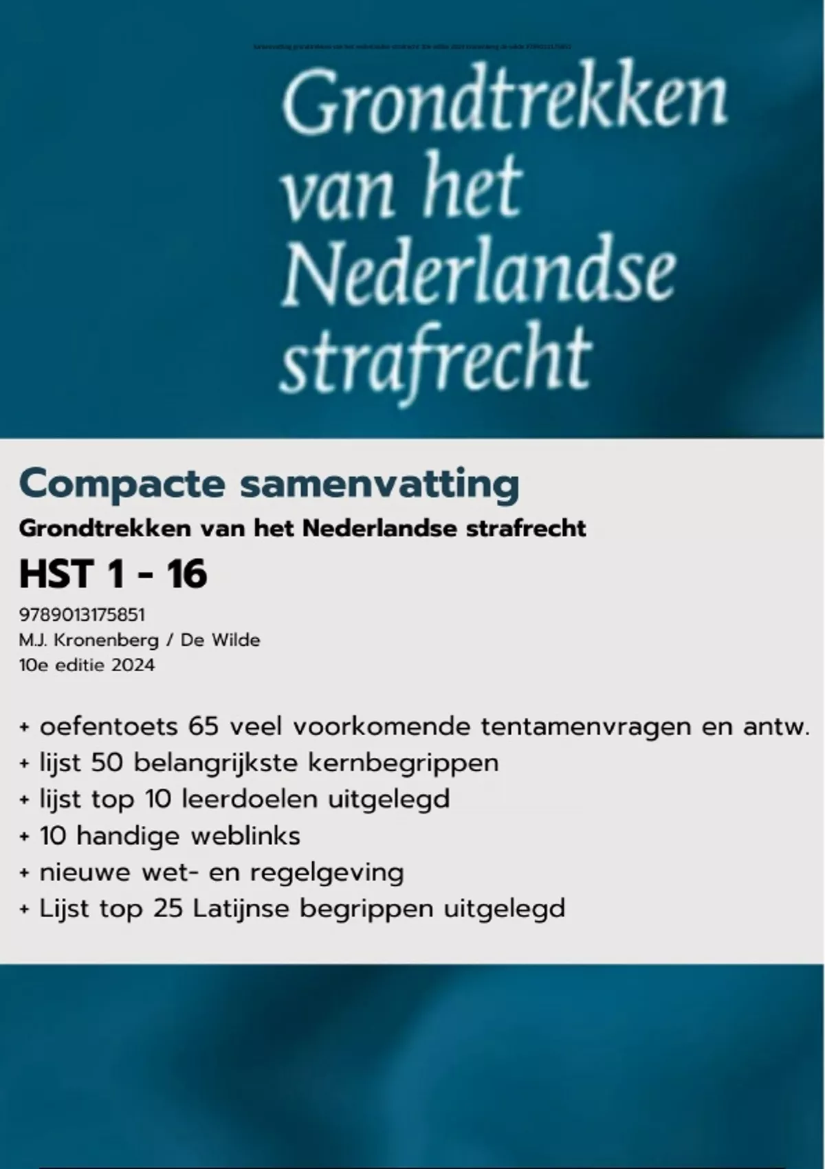 , Samenvatting grondtrekken van het nederlandse strafrecht 10e editie 2024 kronenberg de wilde 9789013175851