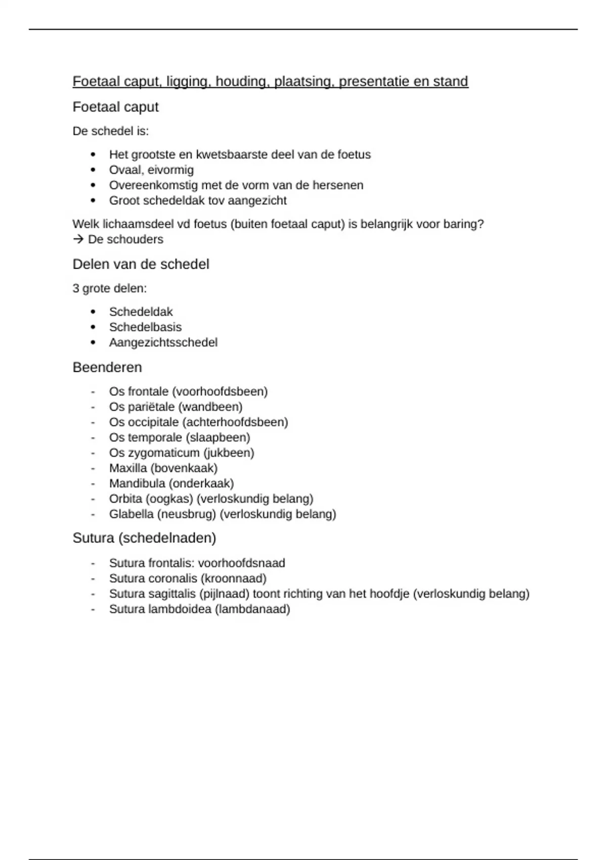 - Sutura sagittalis (pijlnaad) toont richting van het hoofdje (verloskundig belang)