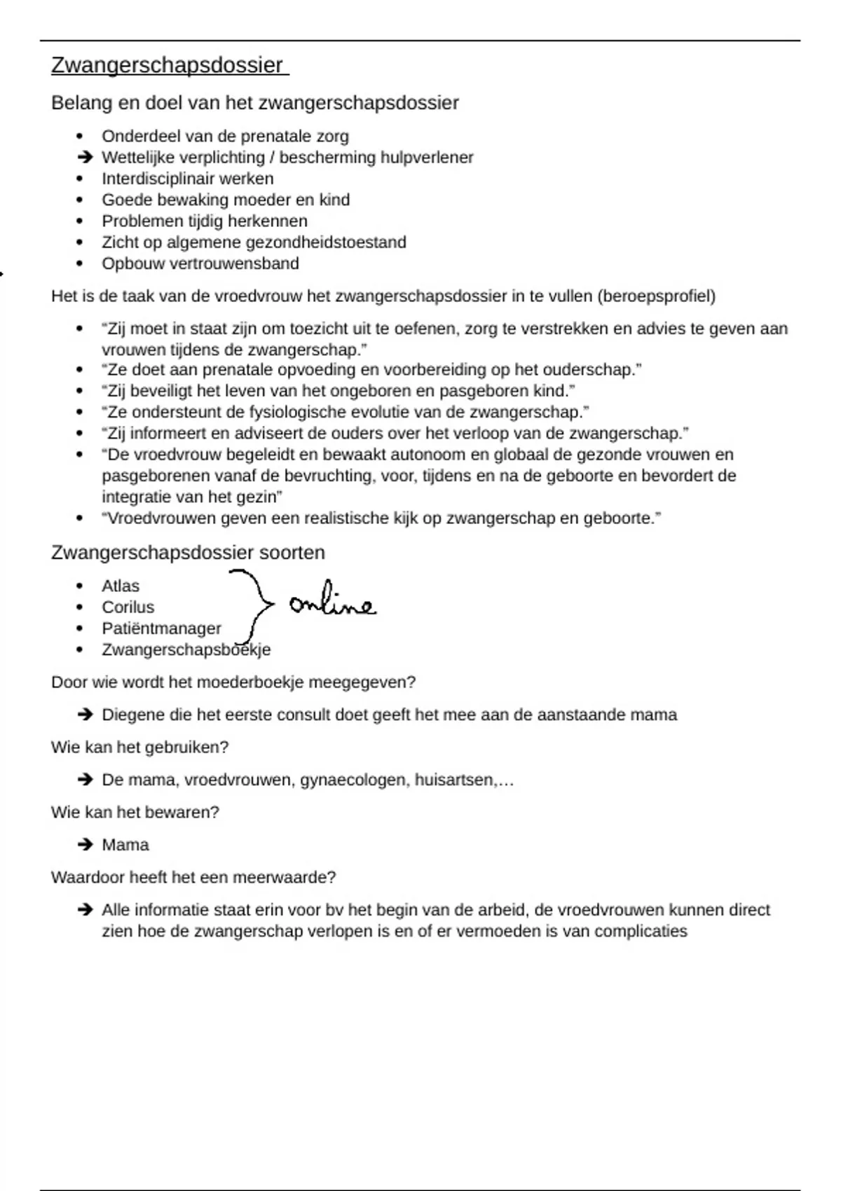 Het is de taak van de vroedvrouw het zwangerschapsdossier in te vullen (beroepsprofiel)