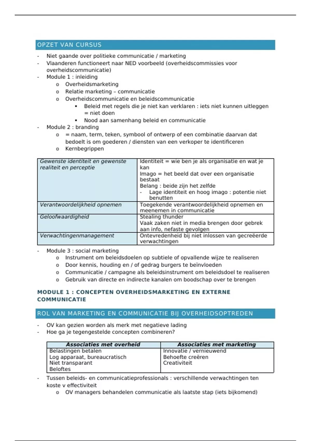 Samenvatting beknopt voor keuzevak Overheidsmarketing en Externe communicatie (modules 1 en 2)