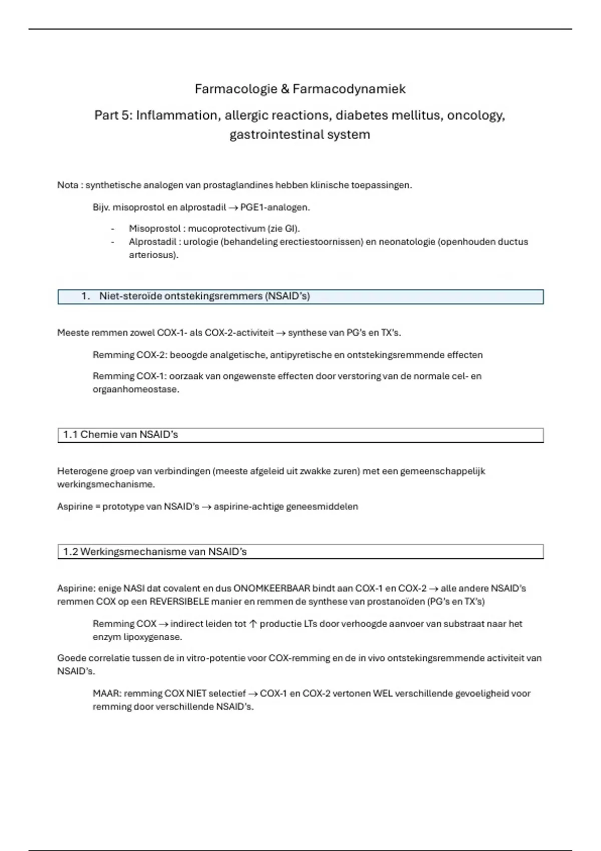 Part 5: Inflammation, allergic reactions, diabetes mellitus, oncology,
