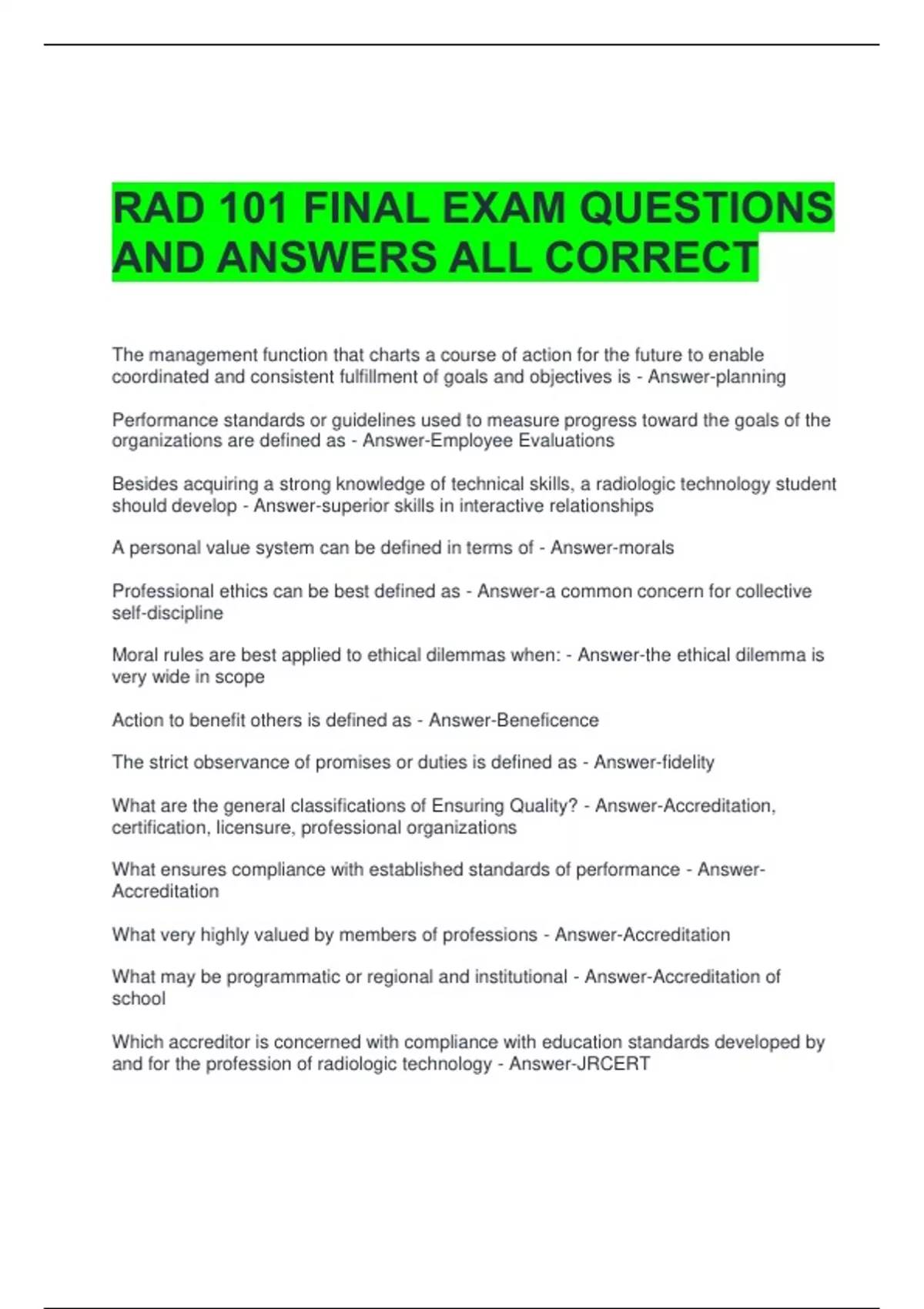and for the profession of radiologic technology - Answer-JRCERT