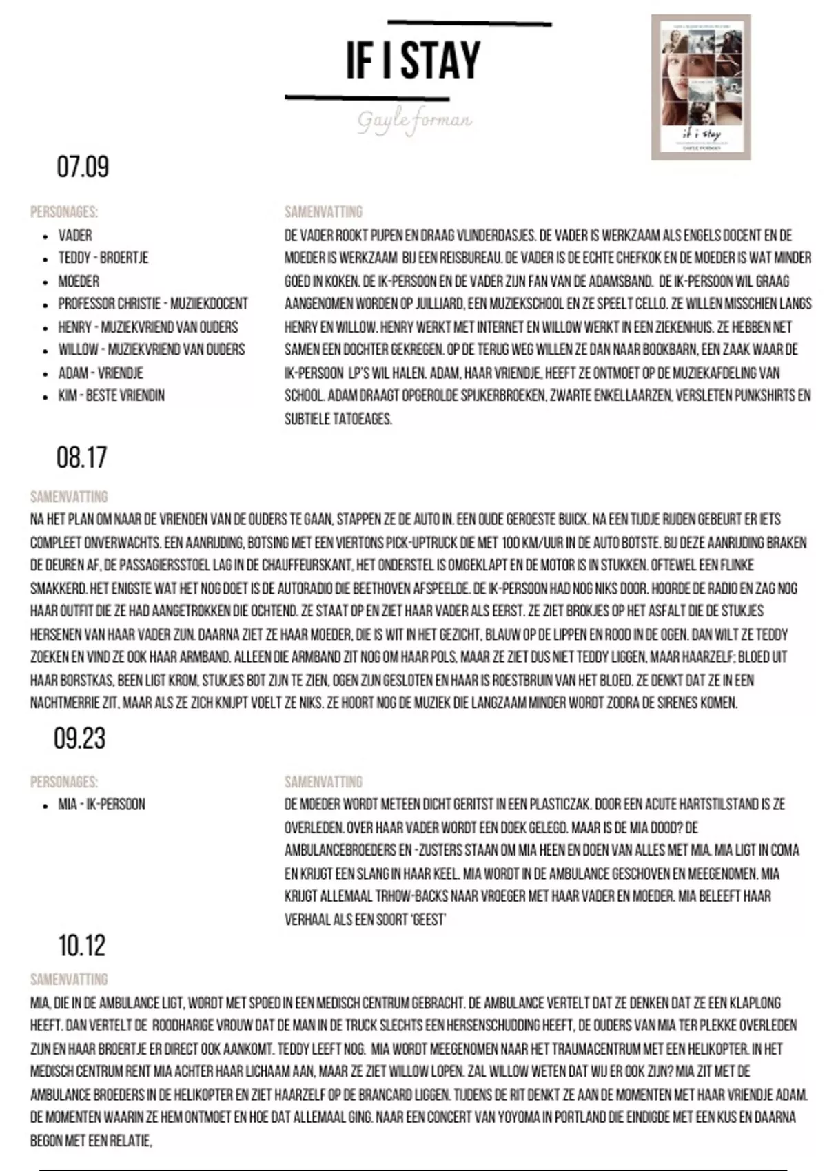 ambulance broeders in de helikopter en ziet haarzelf op de brancard liggen. Tijdens de rit denkt ze aan de momenten met haar vriendje Adam.