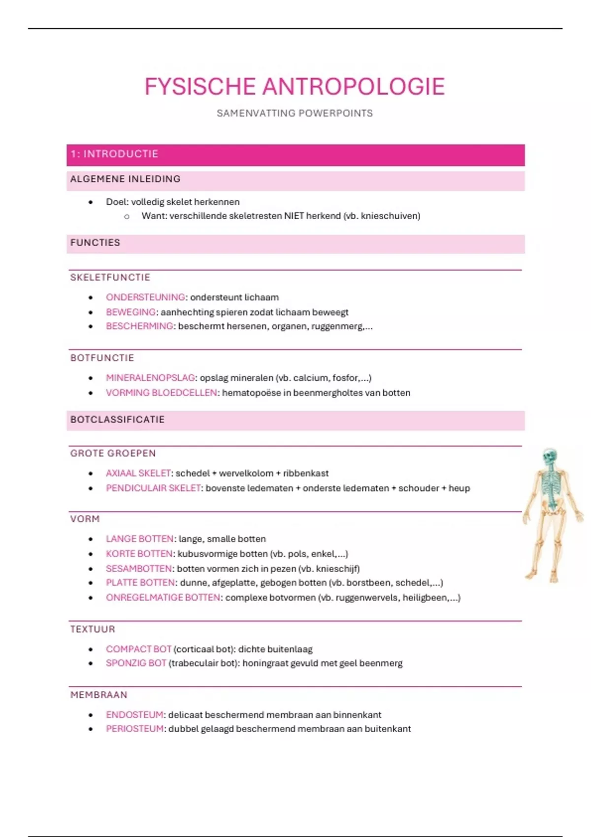 Deze samenvatting bevat de volledige theorie van het partim fysische antropologie. De leerstof is duidelijk opgedeeld per les.