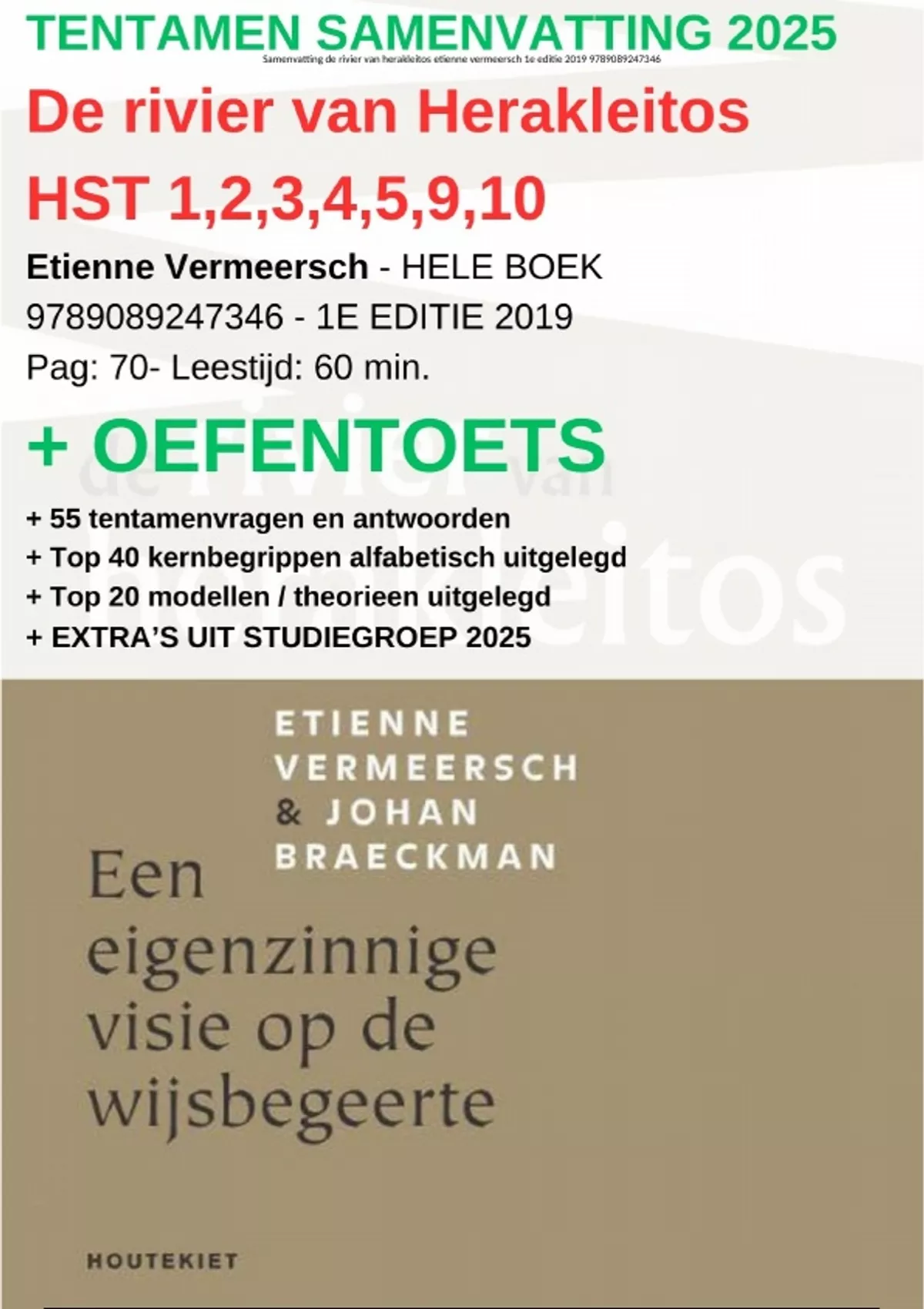 , Samenvatting de rivier van herakleitos etienne vermeersch 1e editie 2019 9789089247346
