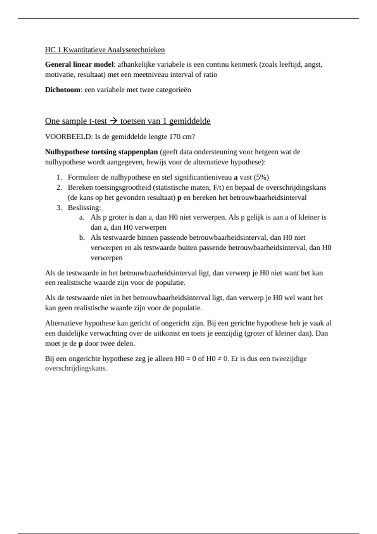 b. Als testwaarde binnen passende betrouwbaarheidsinterval, dan H0 niet