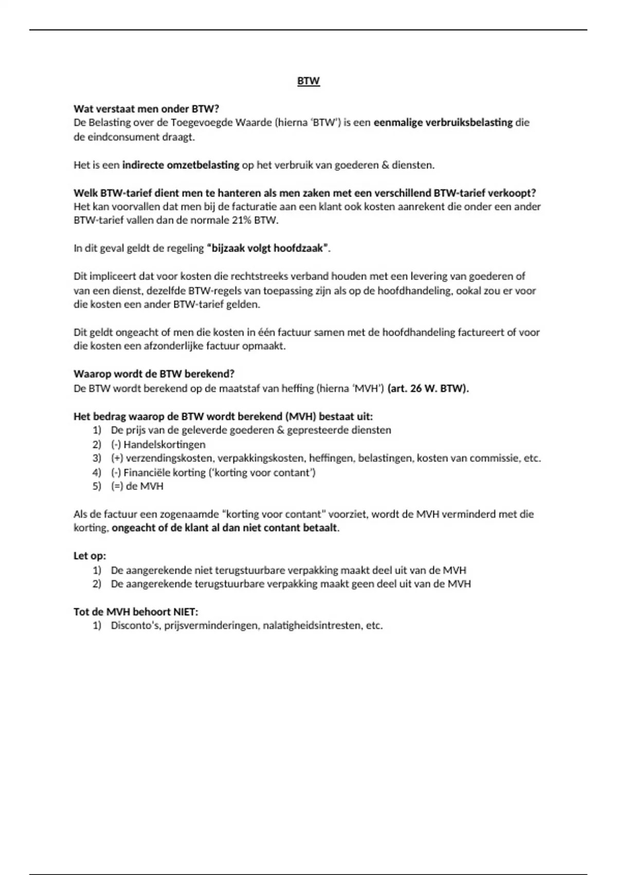 De BTW wordt berekend op de maatstaf van heffing (hierna ‘MVH’) (art. 26 W. BTW).