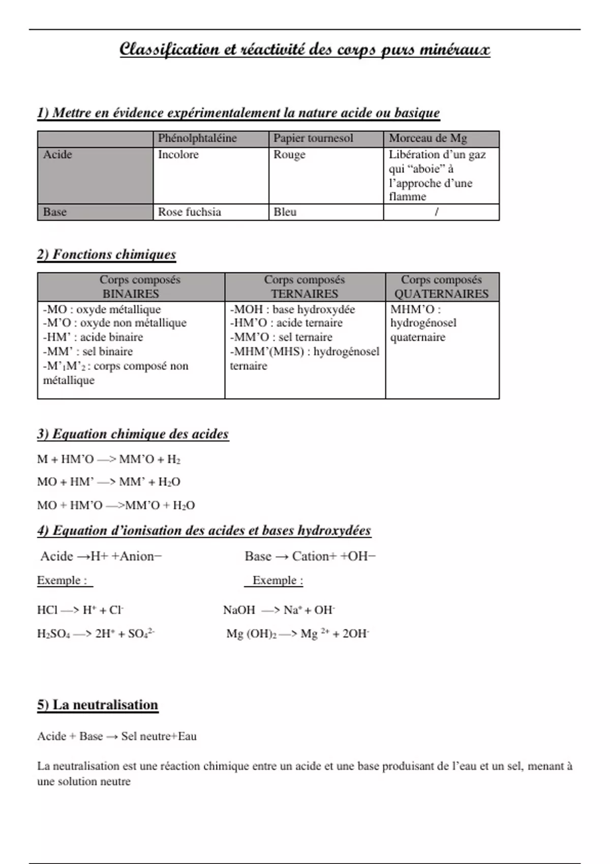2) Fonctions chimiques