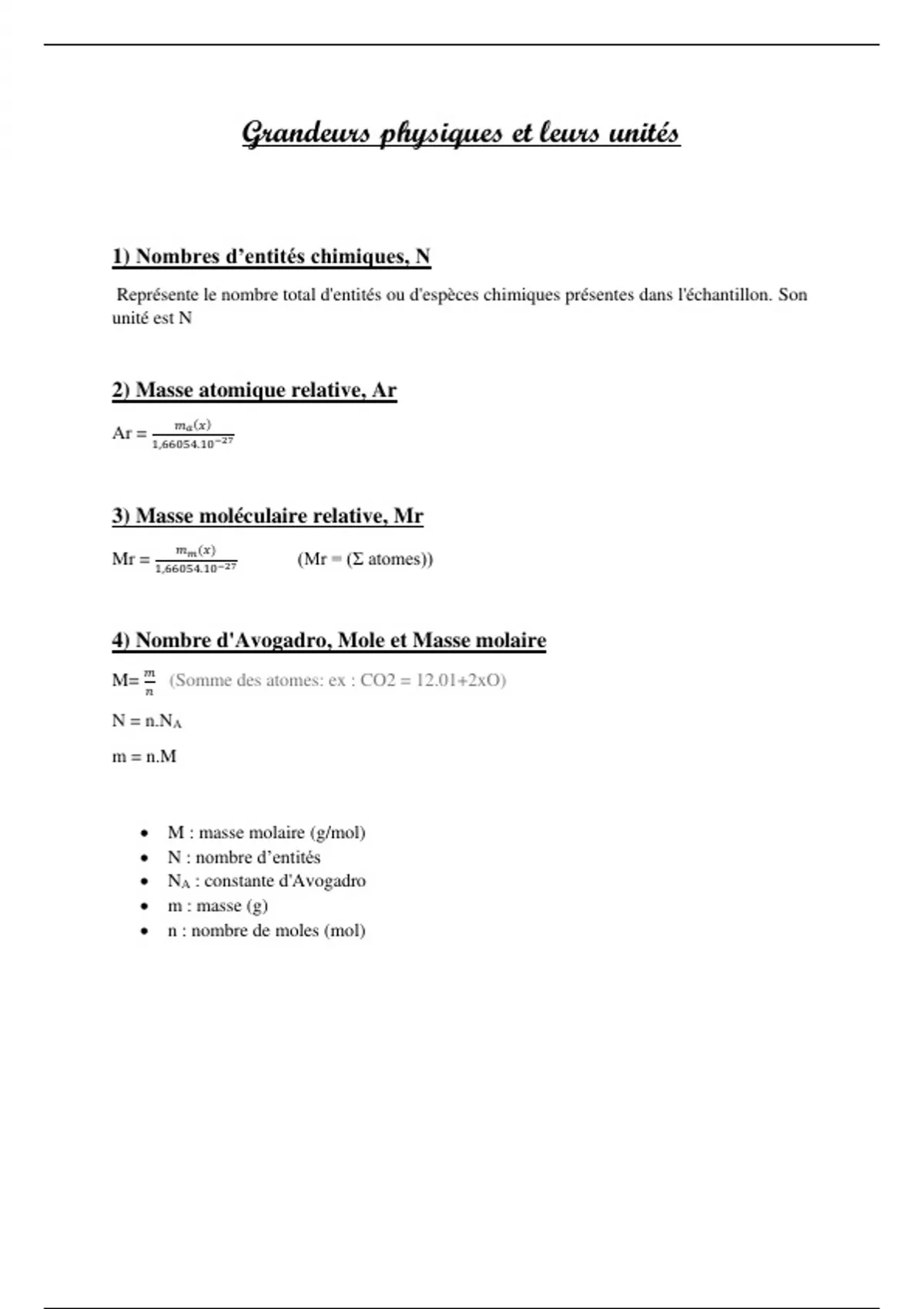 3) Masse moléculaire relative, Mr
