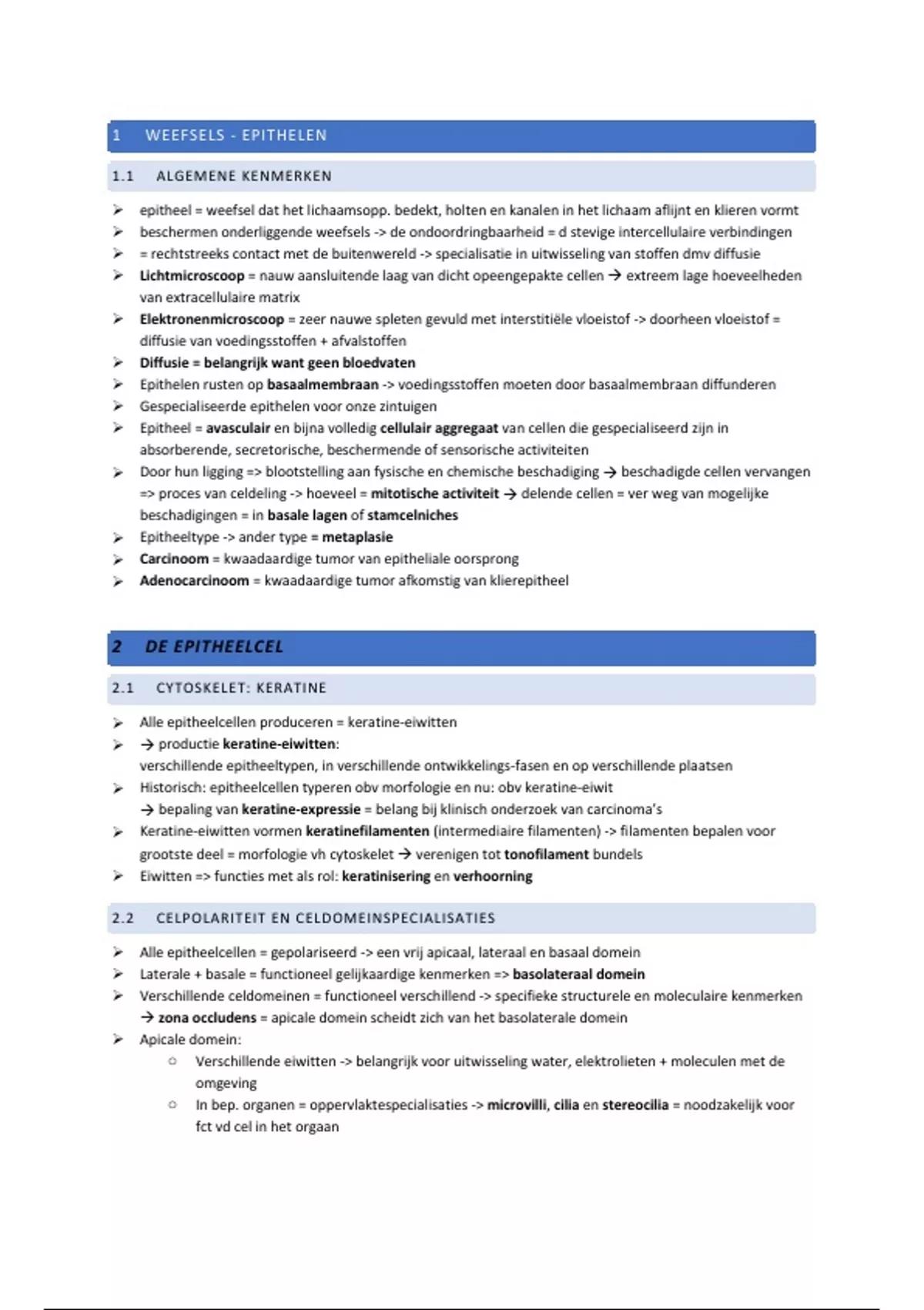  Epitheel = avasculair en bijna volledig cellulair aggregaat van cellen die gespecialiseerd zijn in