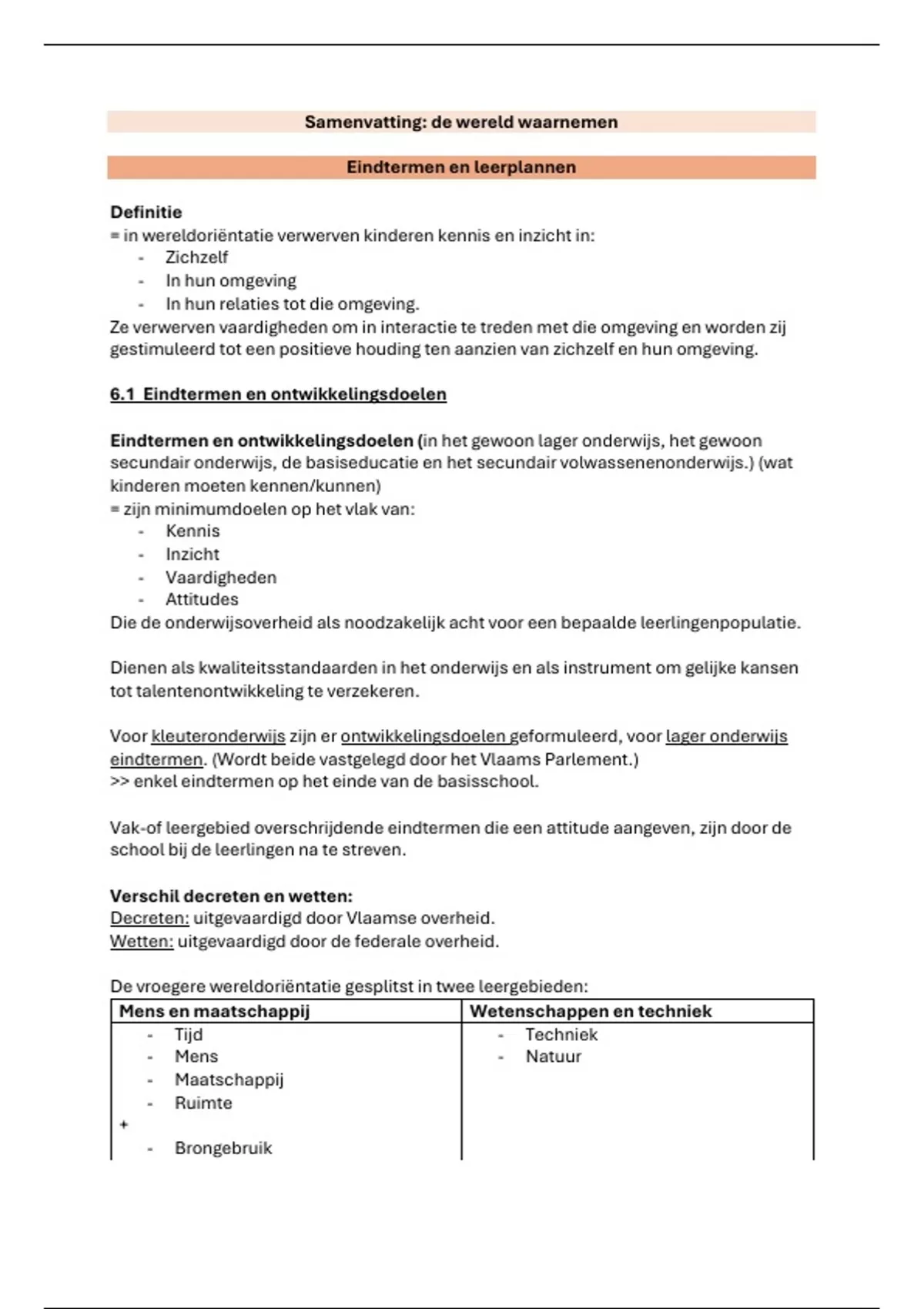 samenvatting eindtermennen en leerplannen de wereld waarnemen