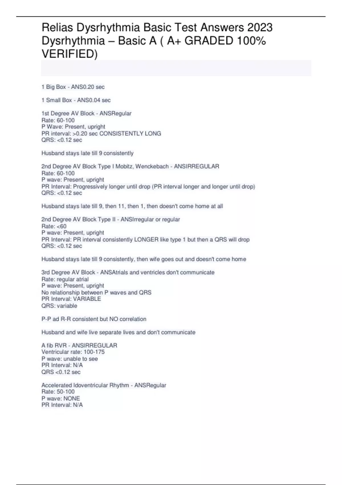 Dysrhythmia – Basic A ( A+ GRADED 100%