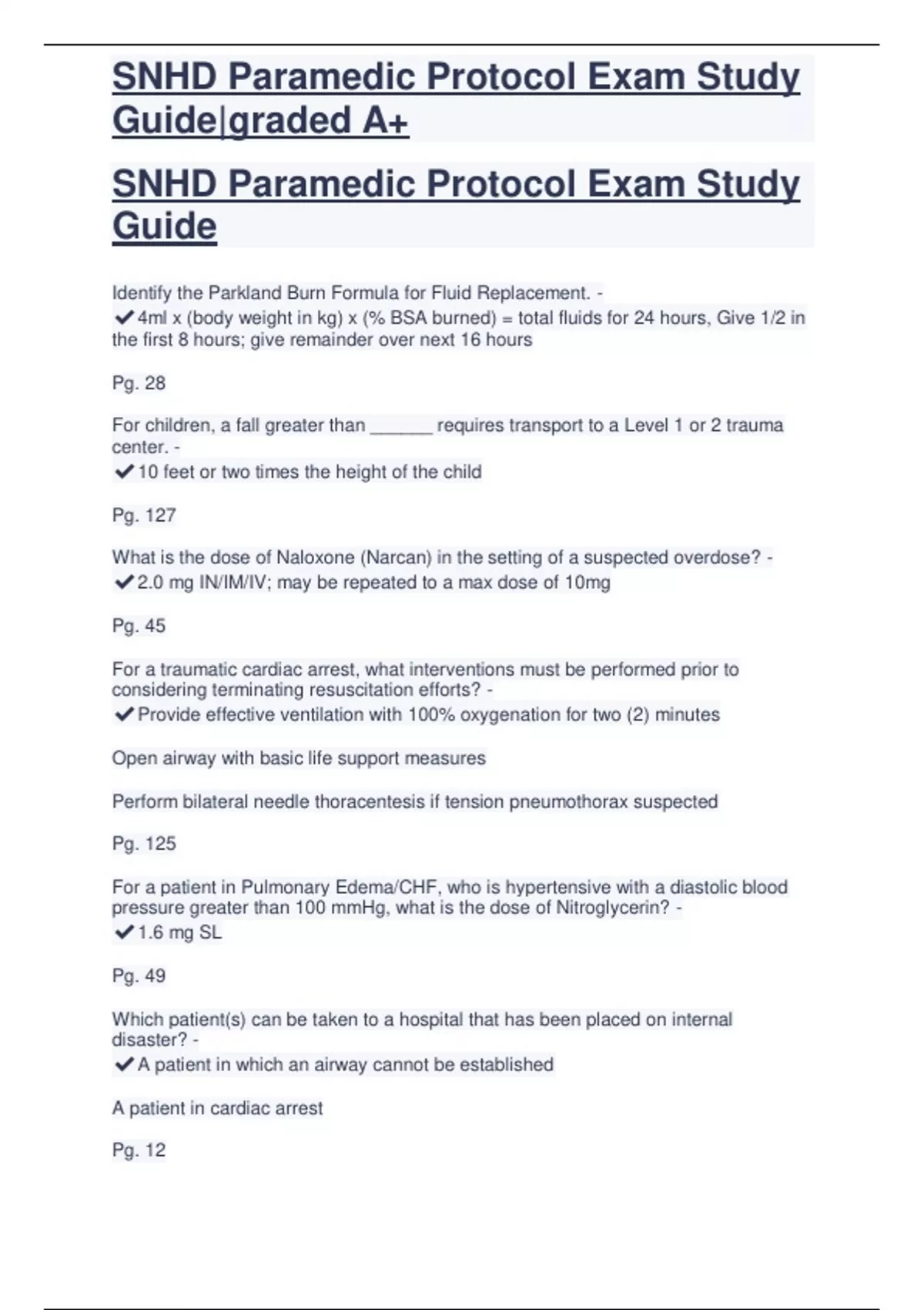 , SNHD Paramedic Protocol Exam Study