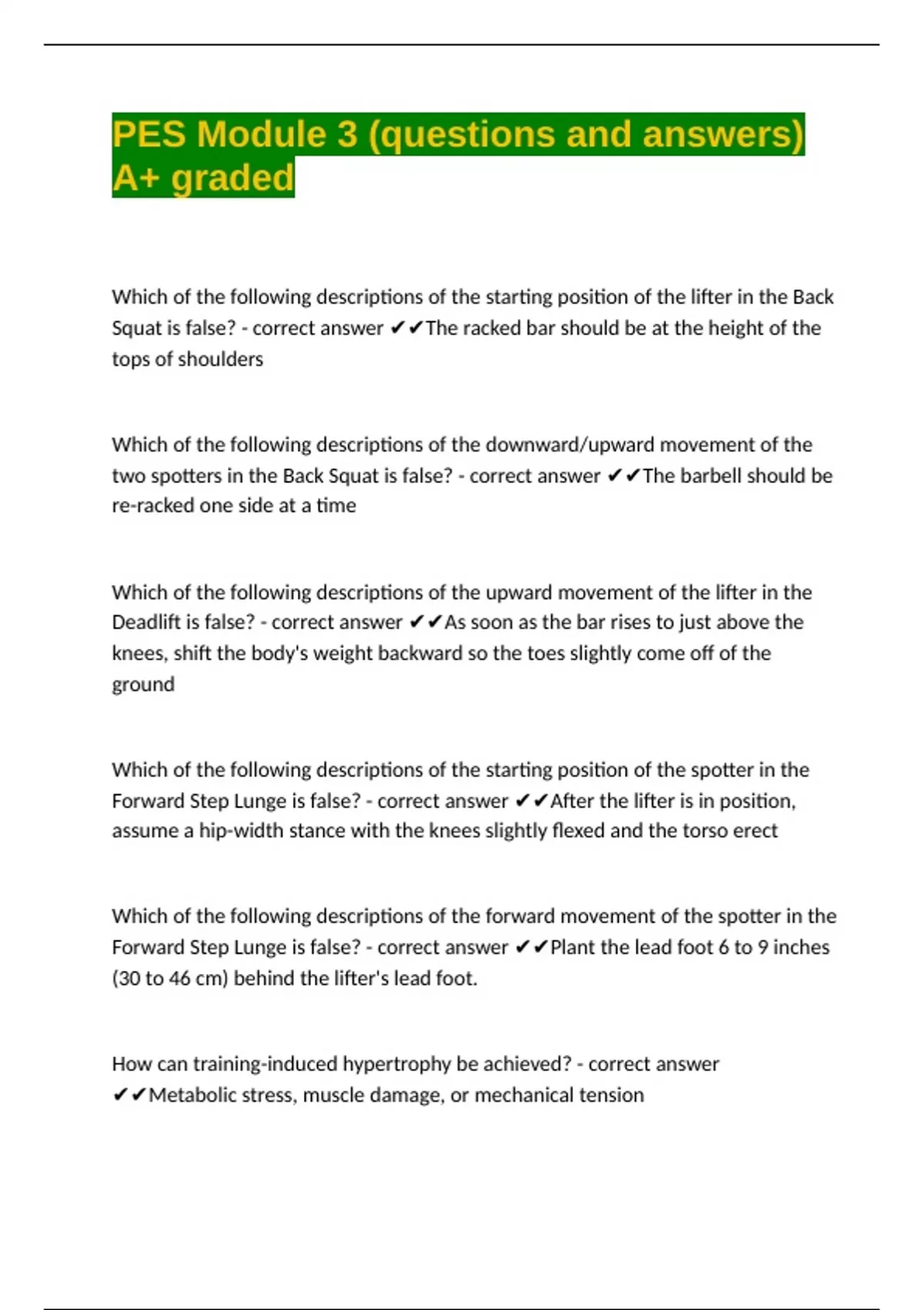 Forward Step Lunge is false? - correct answer ✔✔After the lifter is in position,